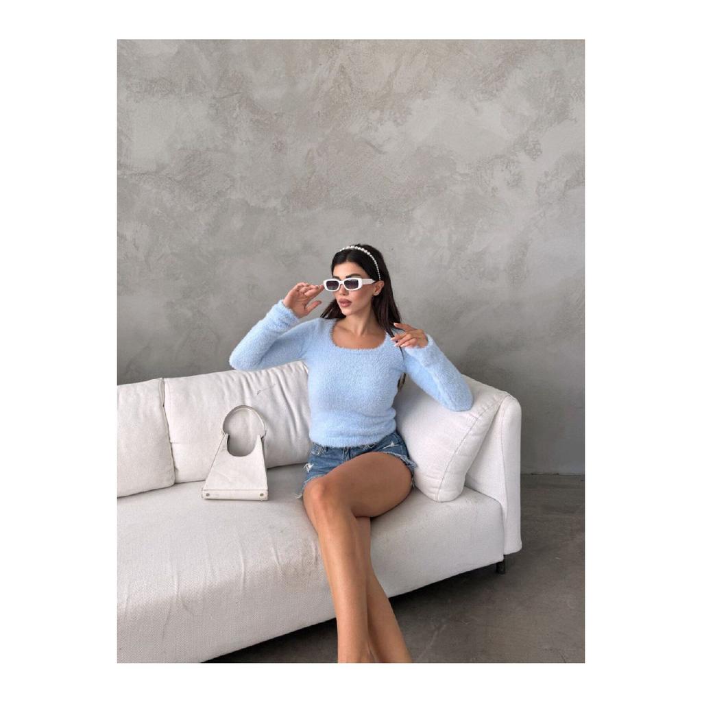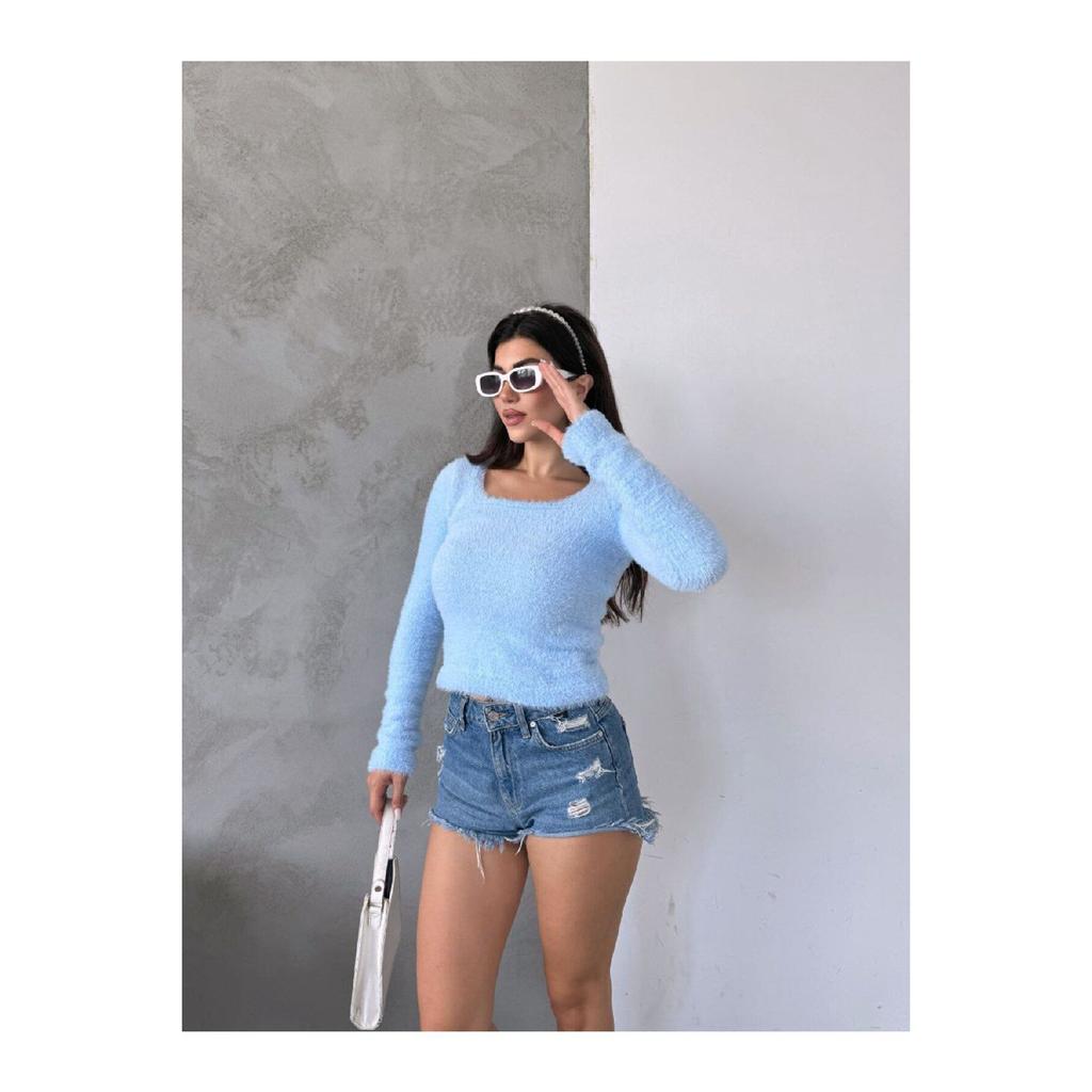 Fuzzy Sweater, Square Collar Women's Fuzzy Sweater