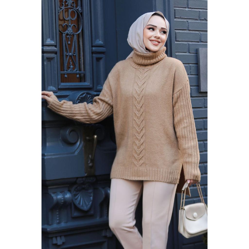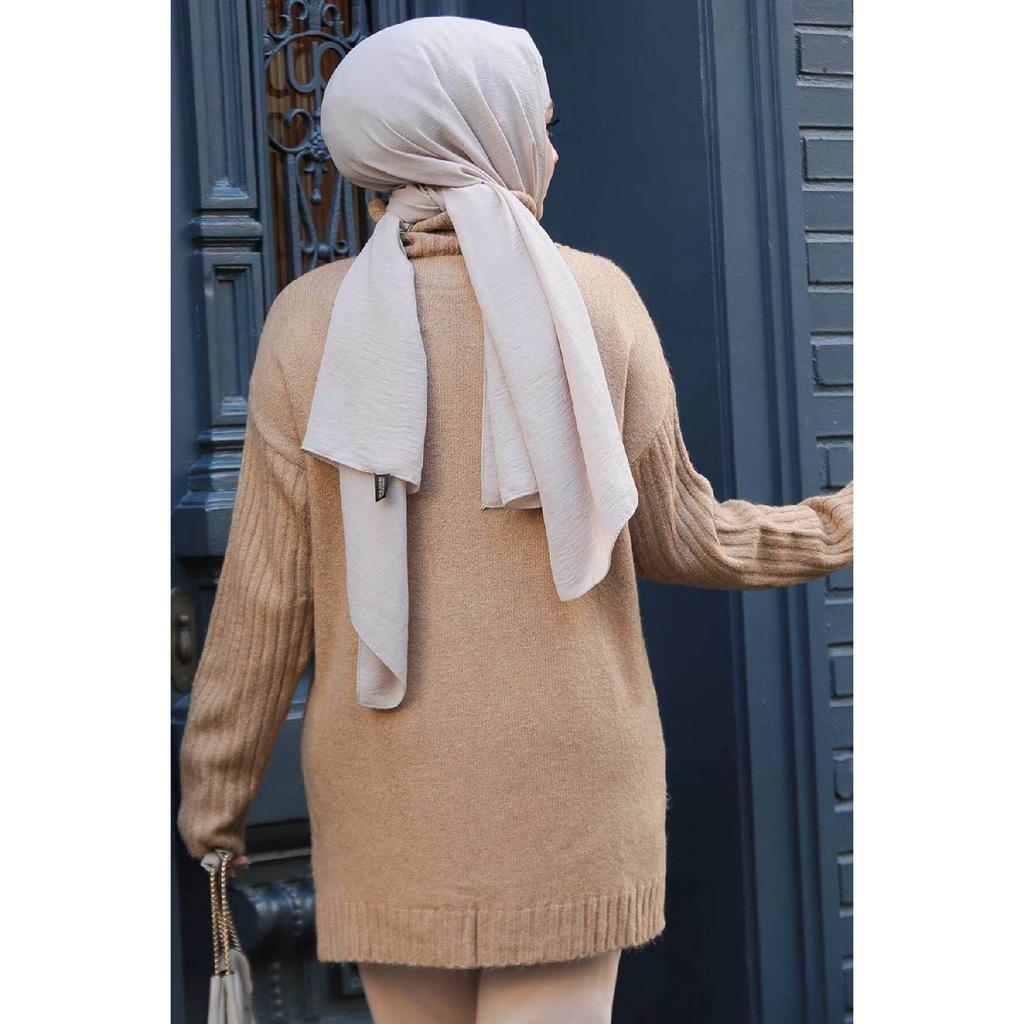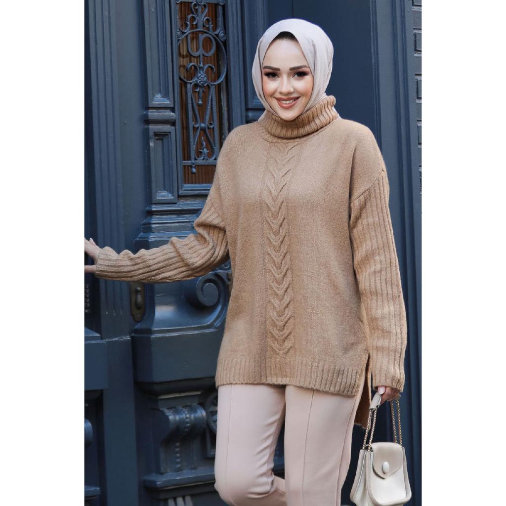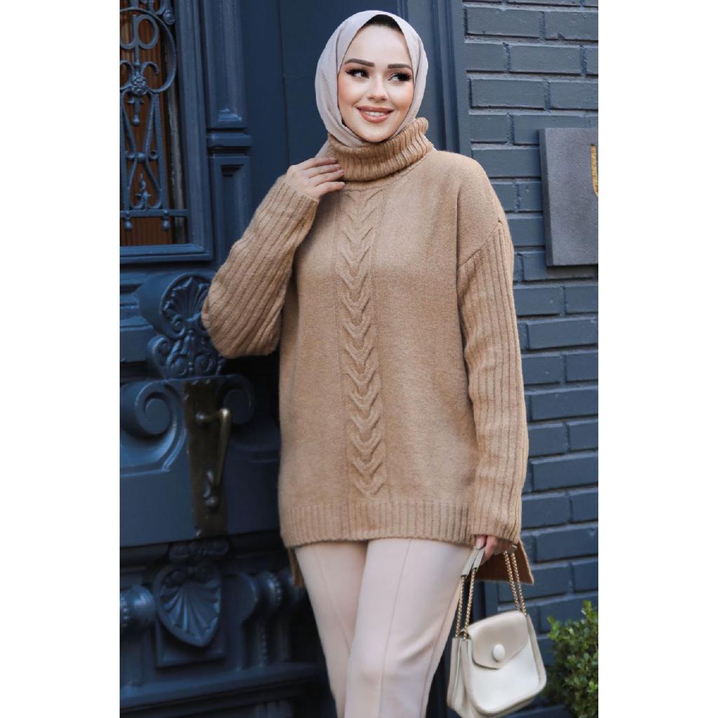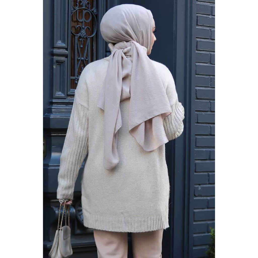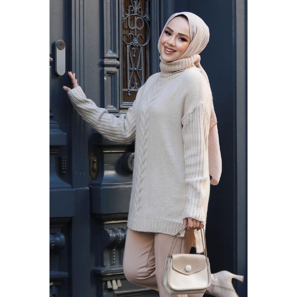 Бежевый вязаный свитер-туника под хиджаб с рисунком 20441бежевый