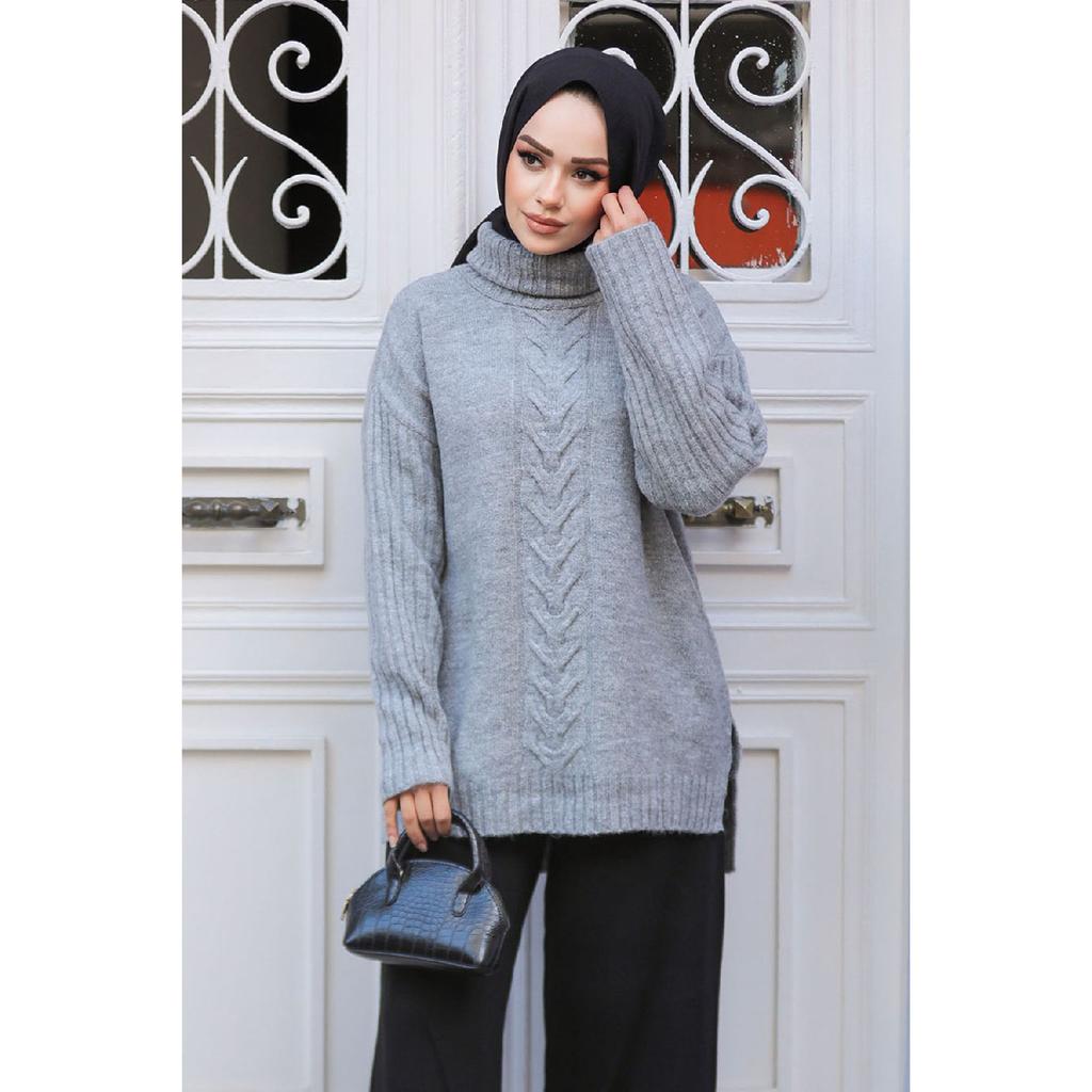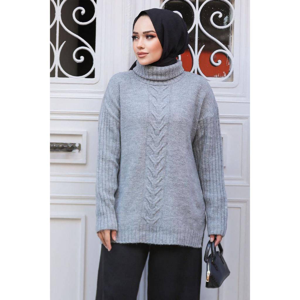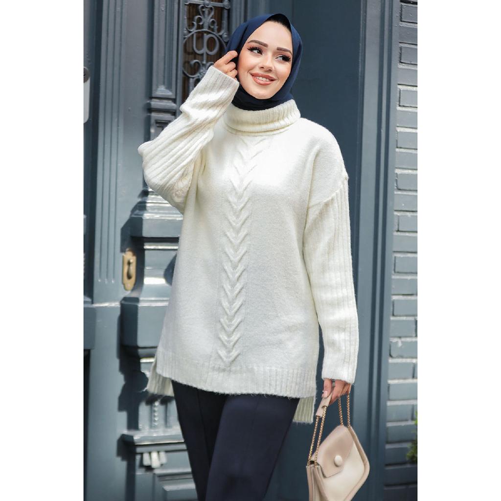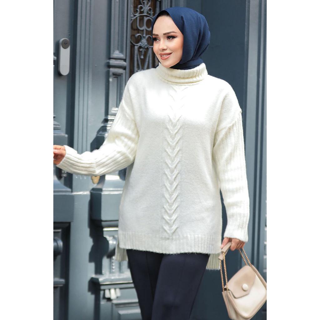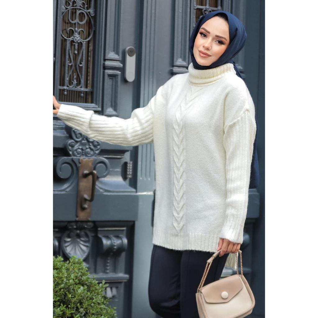 Бежевый вязаный свитер-туника под хиджаб с рисунком 20441бежевый