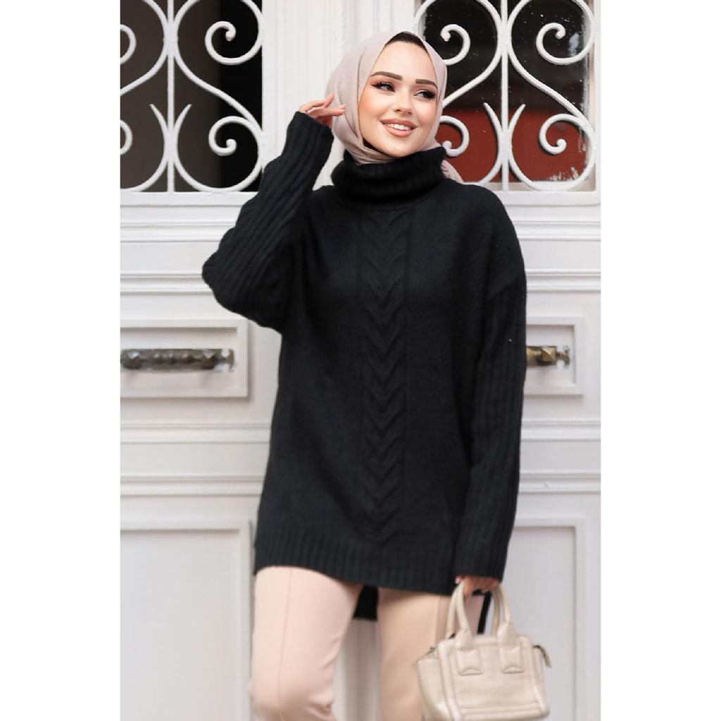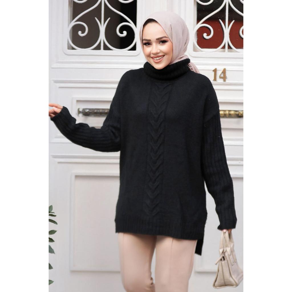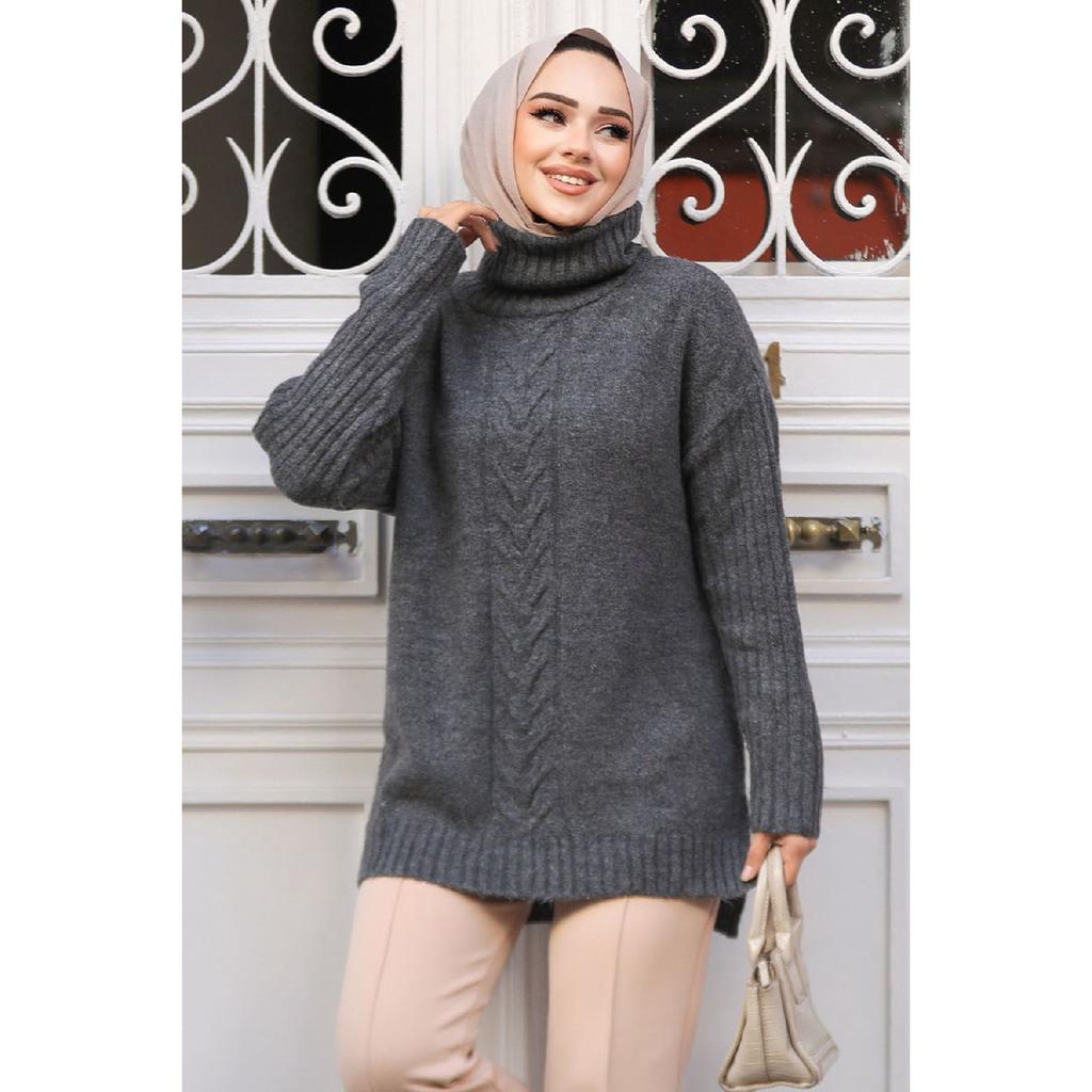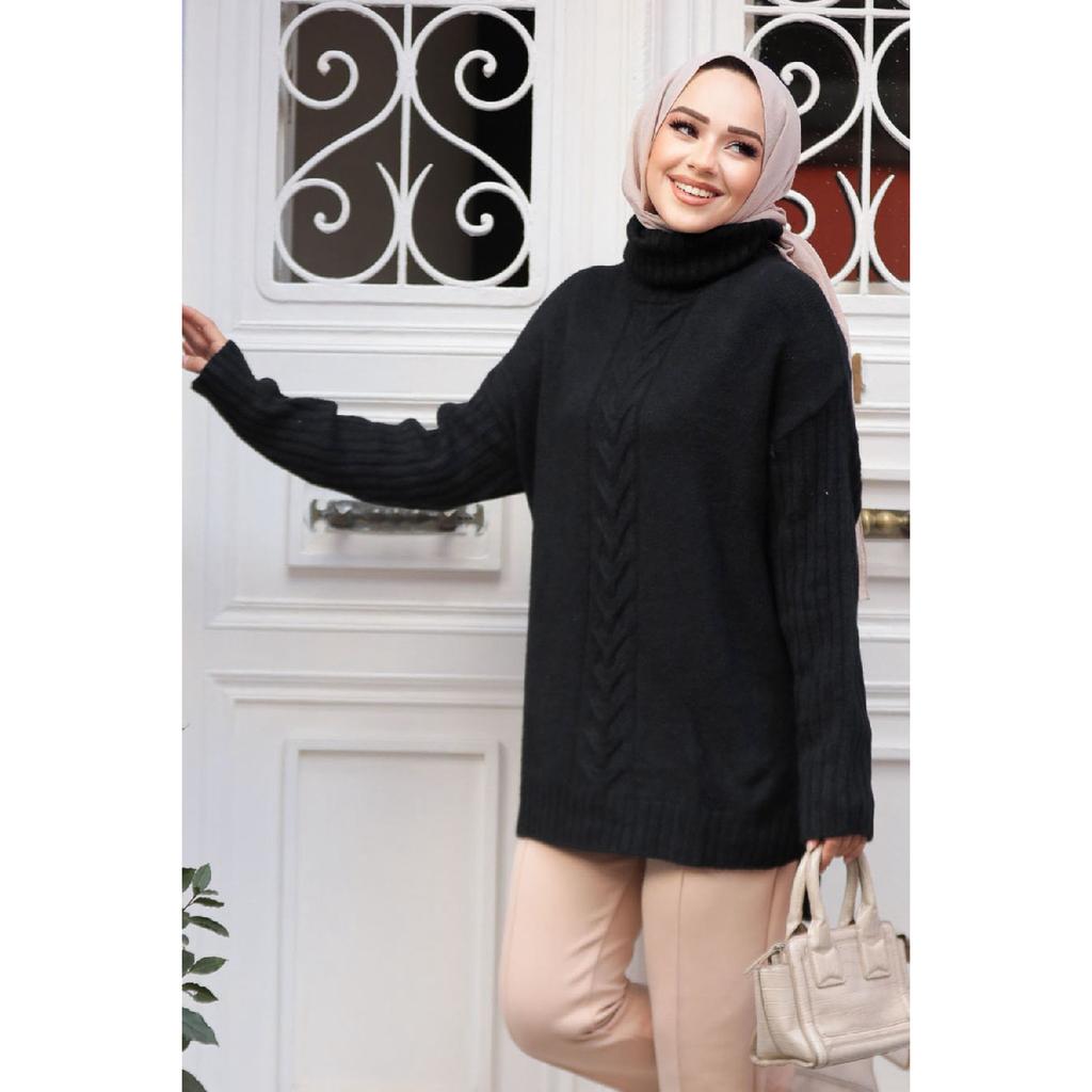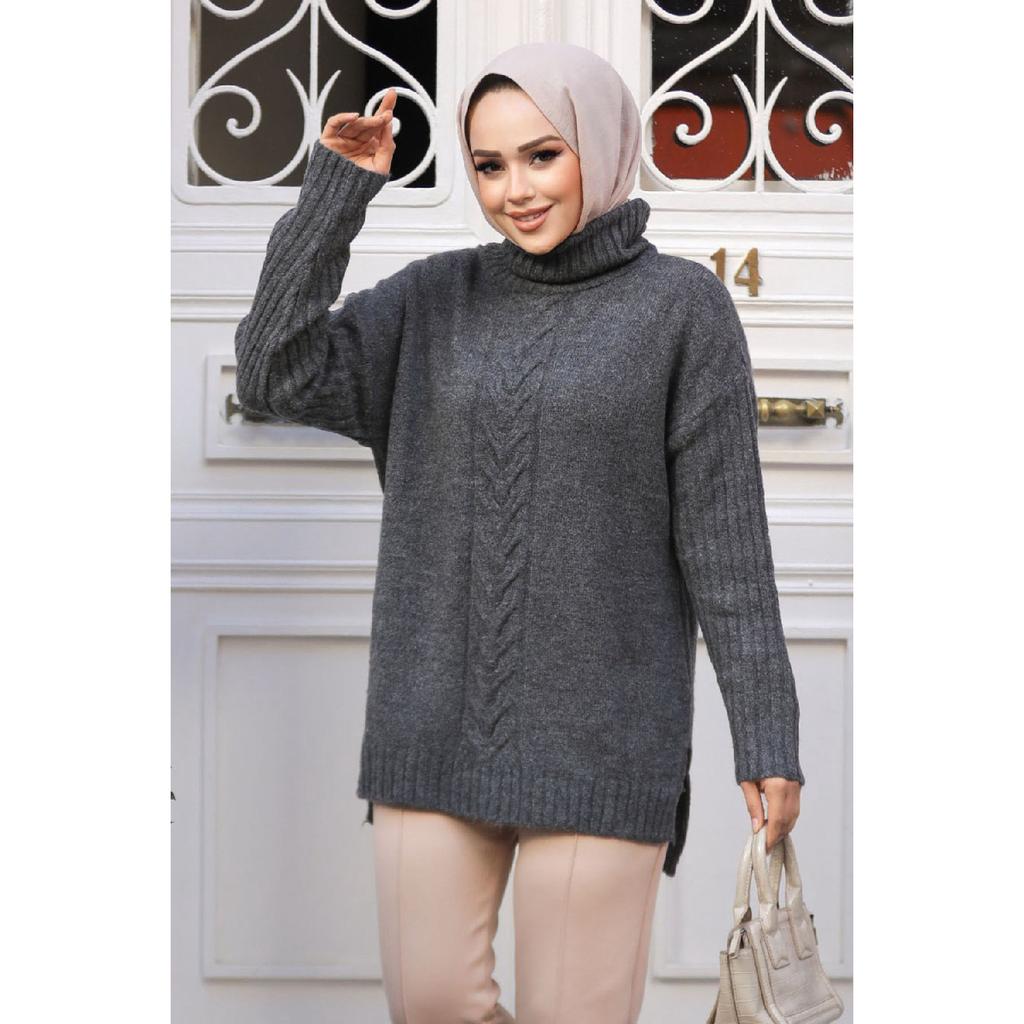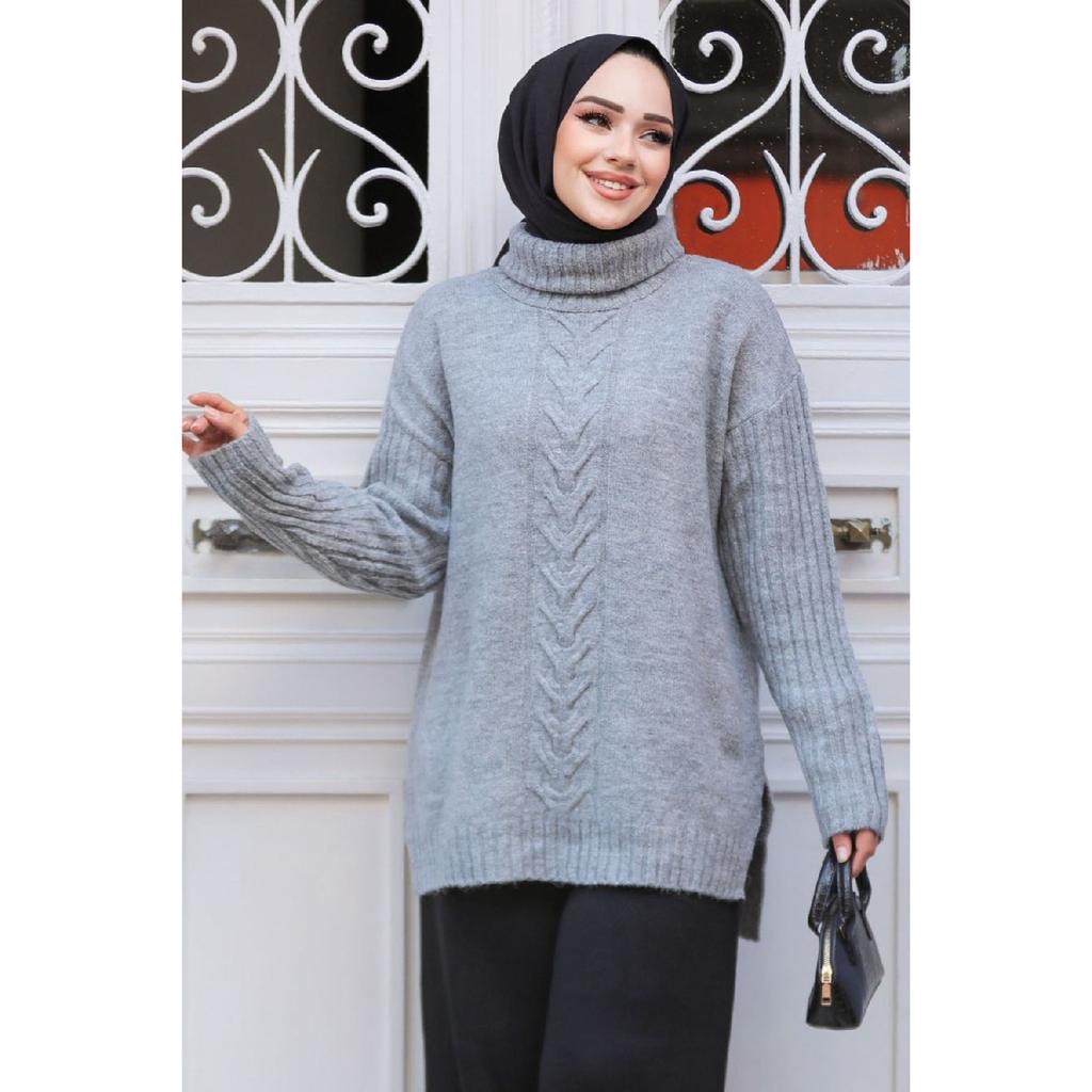 Бежевый вязаный свитер-туника под хиджаб с рисунком 20441бежевый