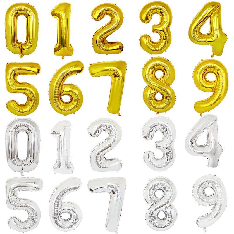 32-дюймовые золотые и серебряные цифровые фольгированные шары для украшения вечеринки - Американский стиль — купить товар онлайн с бесплатной доставкой до всему миру!