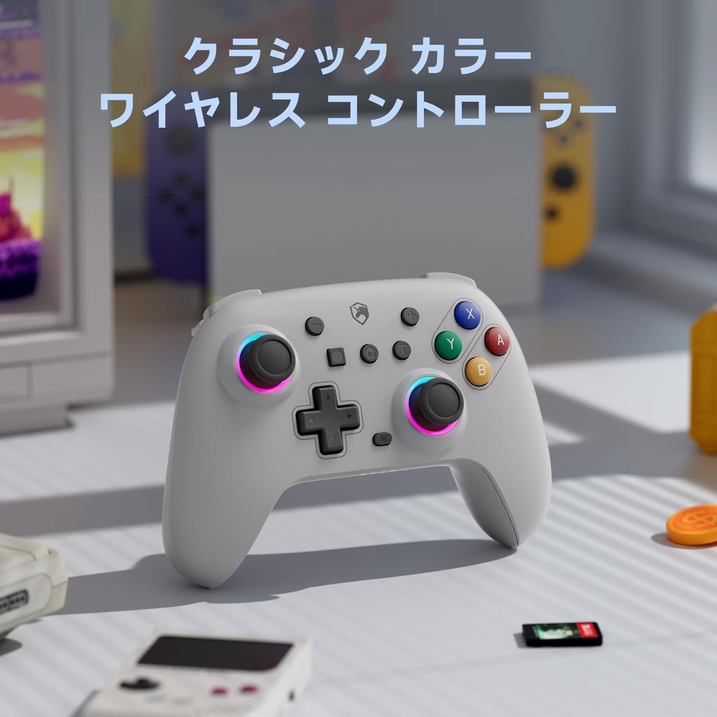[RGB-подсветка, которая светится 9 цветами] Это контроллер переключателя, оснащенный RGB-подсветкой.. Вокруг аналогового джойстика имеется встроенный светодиод, который может светиться 9 цветами.. Цвет и подсветку светодиода можно регулировать, и вы можете установить их в соответствии со своими предпочтениями, например, «одноцветный режим», где вы фиксируете один любимый цвет, или «режим дыхания», где цвет светодиода постепенно меняется.