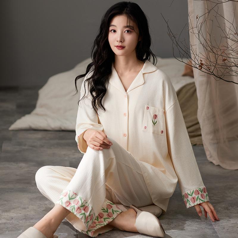 Пижамный комплект Flower Sweet для женщин, милый кавайный комплект с длинными рукавами и длинными штанами, осенне-зимняя одежда для девочек, уютная пижама, мягкая пижама