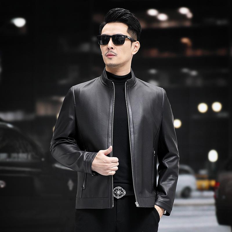 Осень и зима новый стиль натуральная кожаная куртка мужская куртка из овчины воротник стойка кожаная куртка деловая мужская куртка