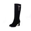 Осенне-зимние сапоги до колена женские черные красные флоковые женские высокие сапоги роскошные повседневные низкие каблуки модные длинные туфли для вечеринок женские
