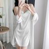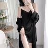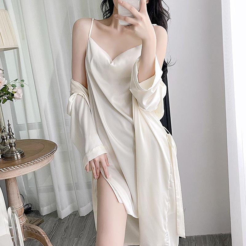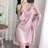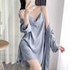 Пижама женская весна и осень тонкий отрезок ледяного шелка халат с длинными рукавами сексуальный V-образный вырез ночная рубашка комплект