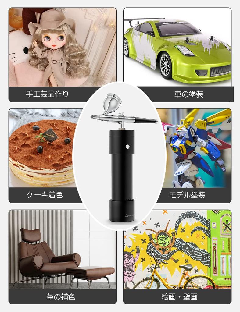 [Удобство и простота использования] Самое приятное то, что компрессор и щетка интегрированы, поэтому им проще пользоваться, чем обычным аэрографом, и его можно использовать где угодно.. Чтобы использовать его, подключите наконечник непосредственно к воздушному насосу. (когда вы включаете насос, из сопла будет выходить воздух, но краска не будет распыляться, пока вы не нажмете кнопку, поэтому вы можете целиться медленно). Поскольку это устройство одинарного действия, удерживать основной корпус и управлять рычагом легче по сравнению с устройством двойного действия.. Это недорогой продукт, который могут использовать даже новички.