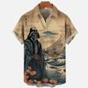 Винтажная мужская рубашка Укиё-э с принтом пейзажа в стиле ретро с изображением самурая в маске, рубашки с короткими рукавами, свободная мужская одежда больших размеров, топы