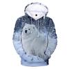 Толстовка с капюшоном с принтом в виде волка самоеда, мужская и женская, весна и зима, толстовка с капюшоном Harajuku, повседневная модная мужская одежда
