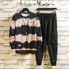 Полосатые мужские комплекты спортивной одежды, осенне-весенний повседневный спортивный костюм, толстовка + спортивные штаны, спортивный костюм, мужские большие размеры — купить товар онлайн с бесплатной доставкой до всему миру!