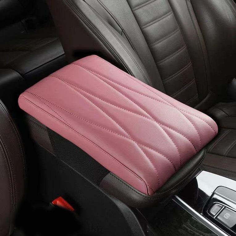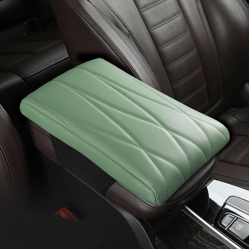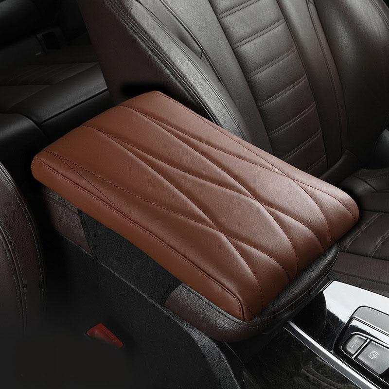 Подлокотник из кожи с эффектом памяти, подлокотник для автомобиля, подлокотник для автомобиля, подставка для консоли, универсальная центральная подушка, вышитая полосатая ромбовидная подлокотник, ящик для сиденья