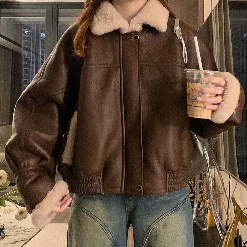 Куртка из овечьего меха, короткое пальто, женская зимняя 2024, новая модная брендовая меховая интегрированная милая крутая одежда для мотоциклистов