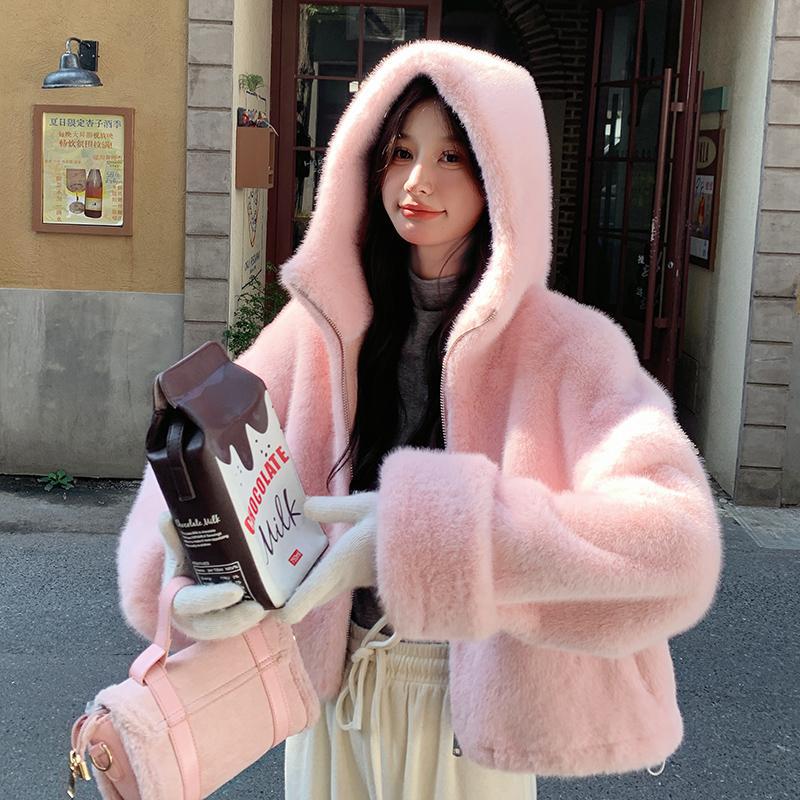Короткое пальто из искусственного норкового бархата для женщин, осень-зима 2024, новый розовый мех ягненка, искусственный мех, плюш, утолщенный верхний слой