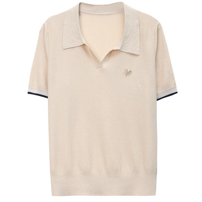 Футболка с коротким рукавом и воротником-поло Женская летняя футболка с отложным воротником Ice Silk Knit Sweater Тонкие футболки женские