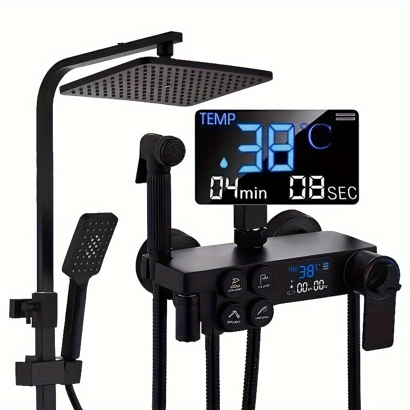Черная светодиодная душевая система с цифровым дисплеем - 4-режимная ручная и дождевая головка, настенная, полный комплект для модернизации ванной комнаты — купить товар онлайн с бесплатной доставкой по всему миру!