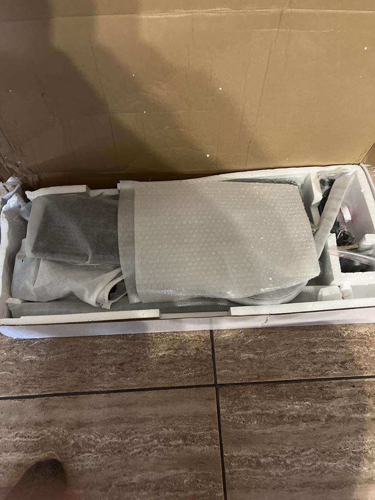 Пришла душевая стойка в замятой коробке, упаковочный антивандальный короб из пенопласта разрушен, на лицевой панели смесителя забоина, а так тяжёленький , похоже , что все ответственные элементы из металла.