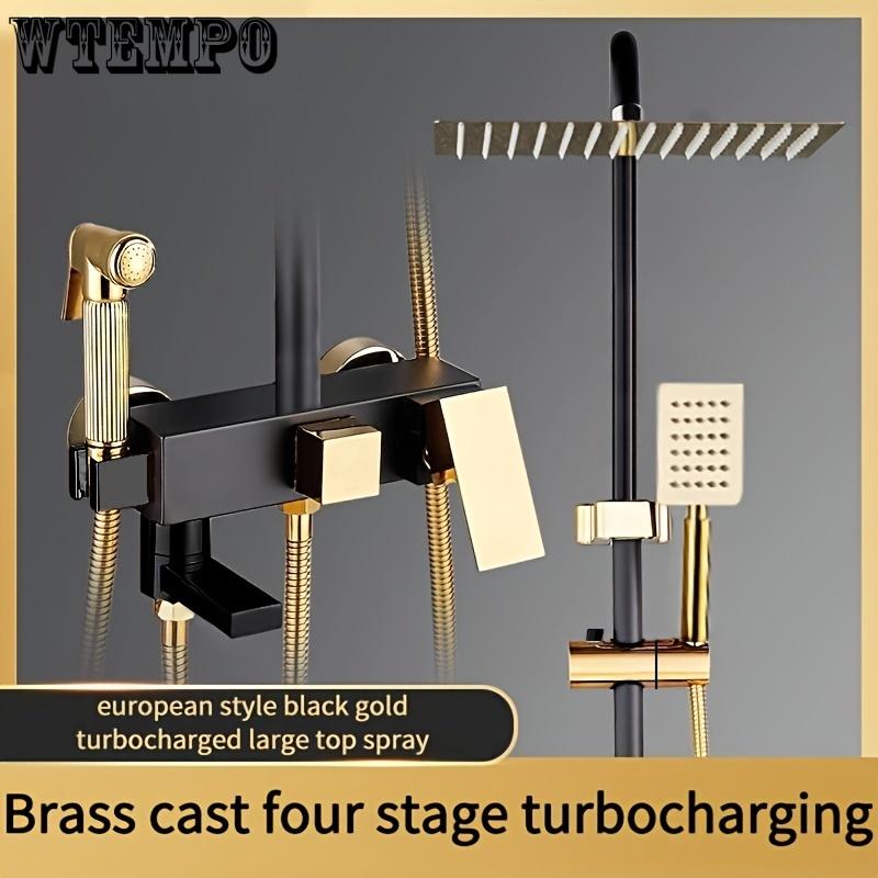 Душевой гарнитур с 4 функциями, черный и золотой, латунь, настенный, с ручным распылителем, двойные душевые лейки для повышенного давления