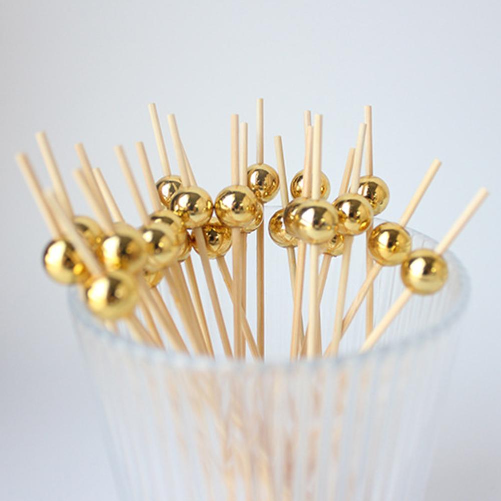 100/25 шт. золотые жемчужные палочки для коктейлей еда фрукты палочки свадебные одноразовые палочки для торта десерт коктейльные палочки зубочистка шпажка