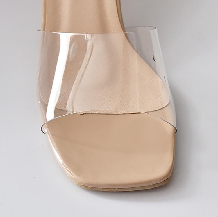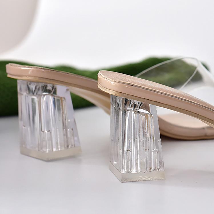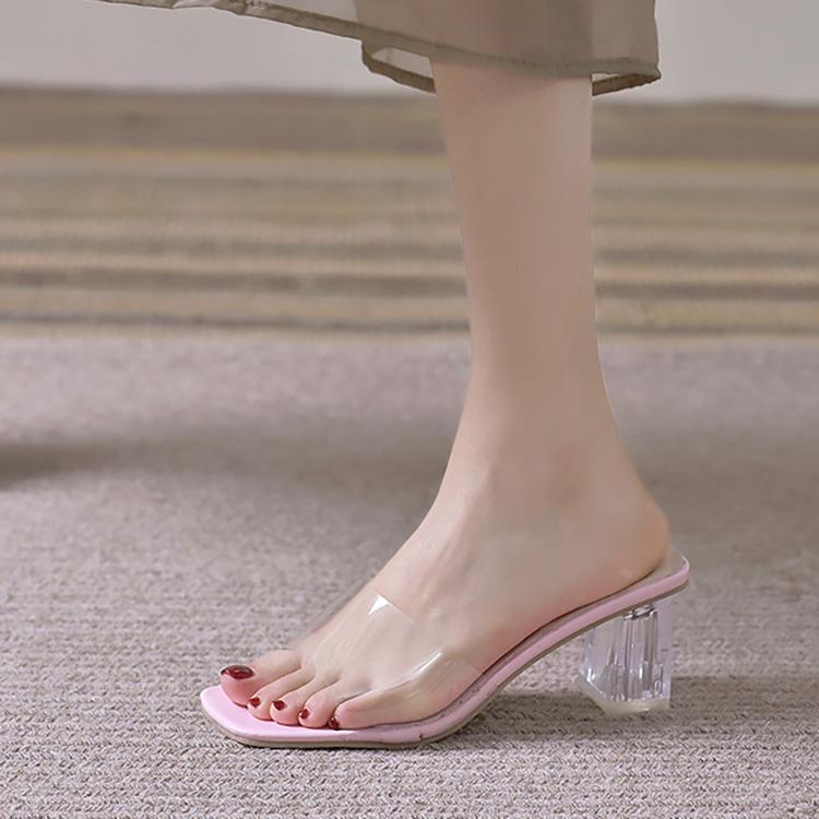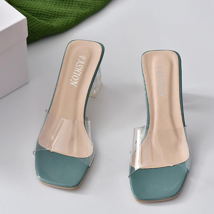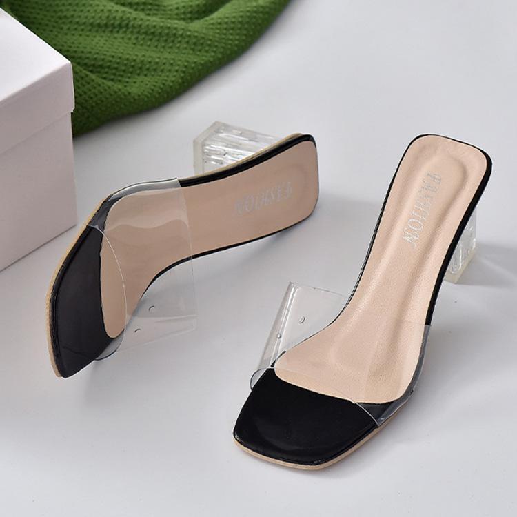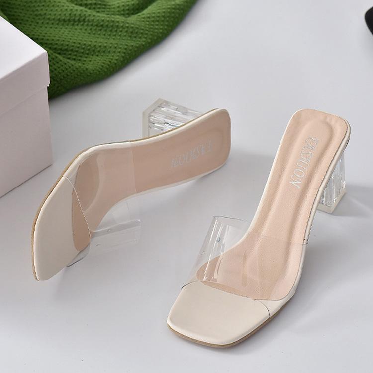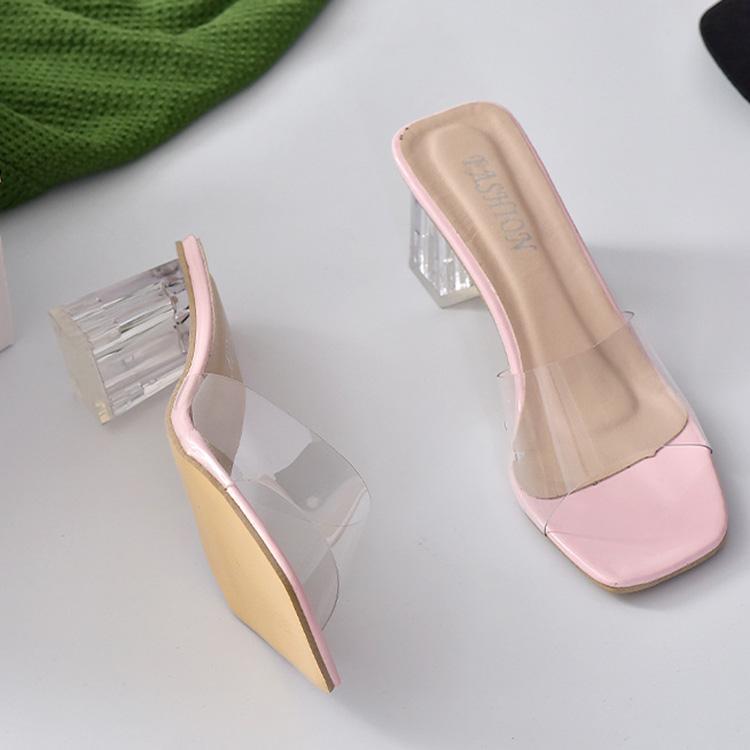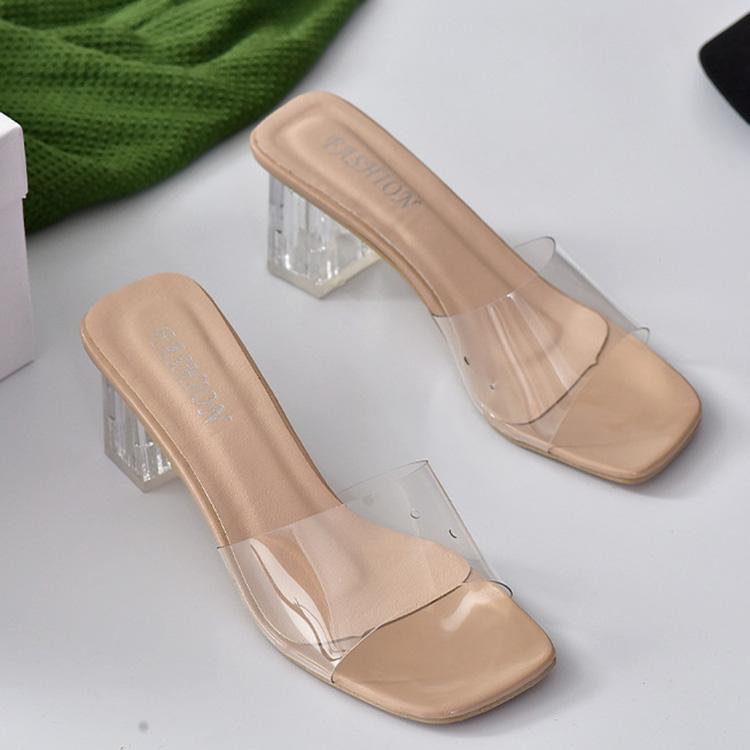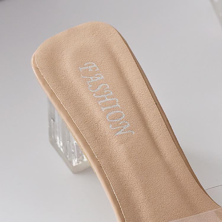 Женские летние тапочки на высоком толстом каблуке, повседневные босоножки с квадратным носком и кристаллами на каблуке, размеры 35-42