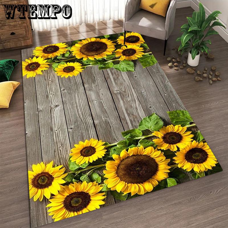 Ковровое покрытие с рисунком подсолнуха для гостиной, устойчивое к грязи и простое в уходе, коврик для ног, большой напольный коврик для спальни