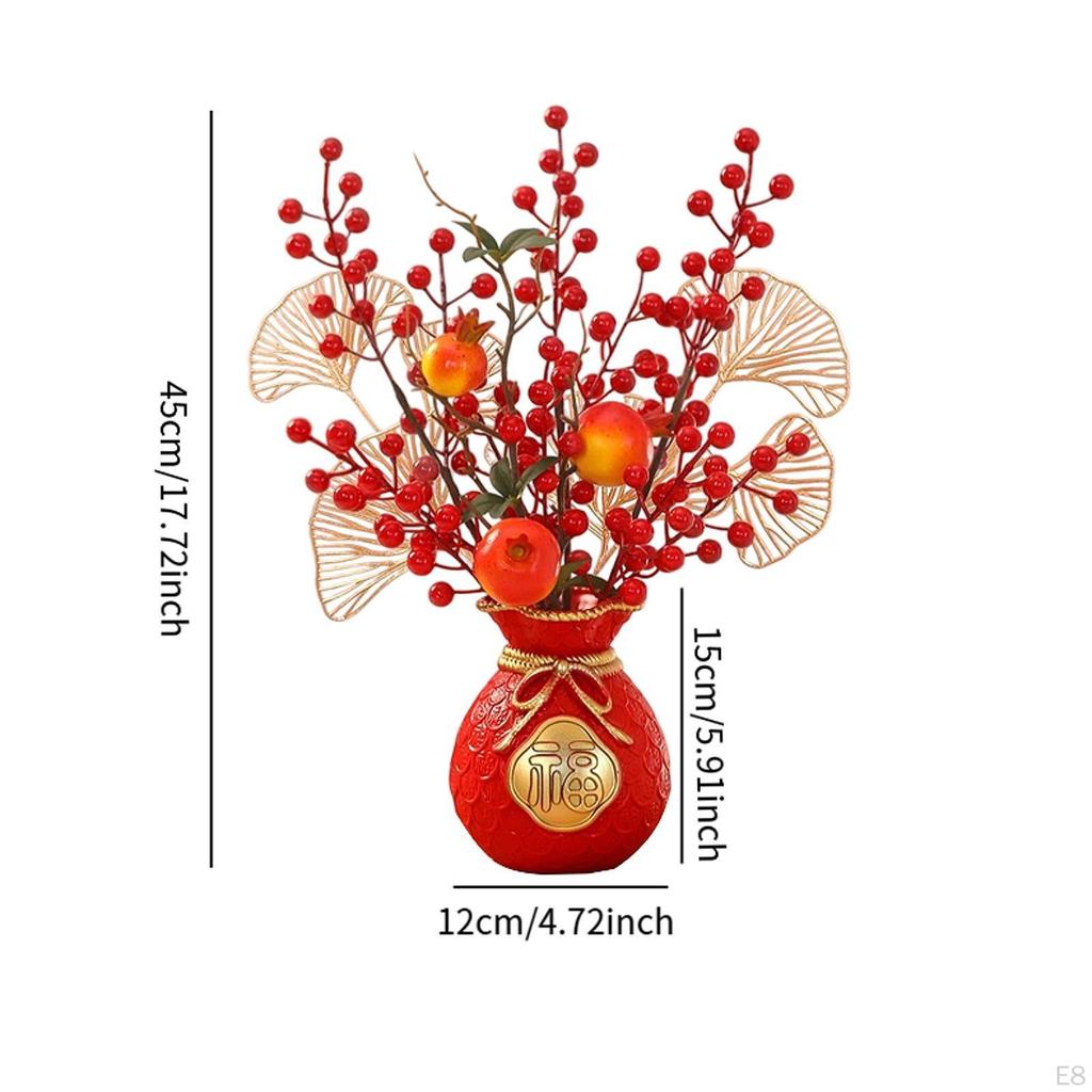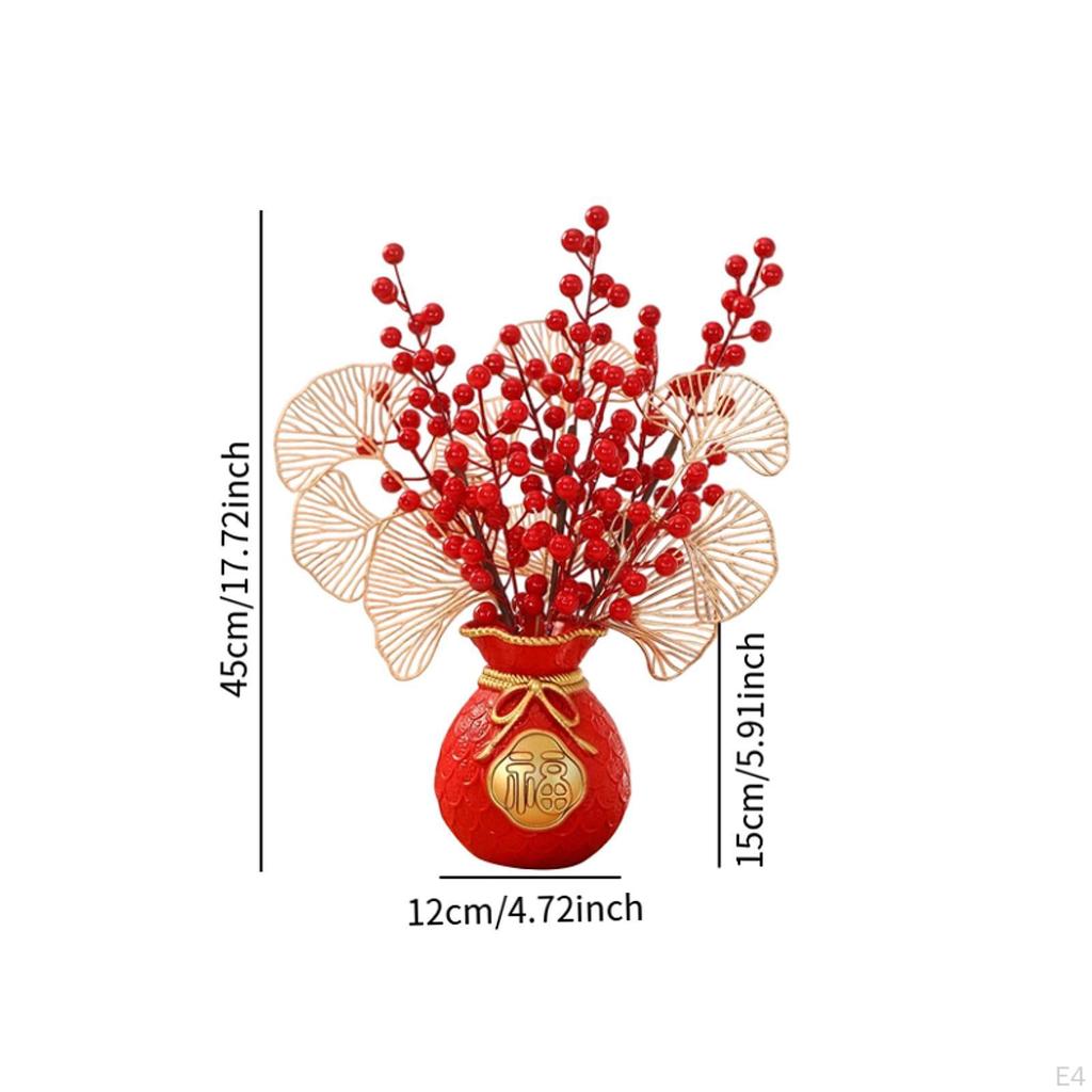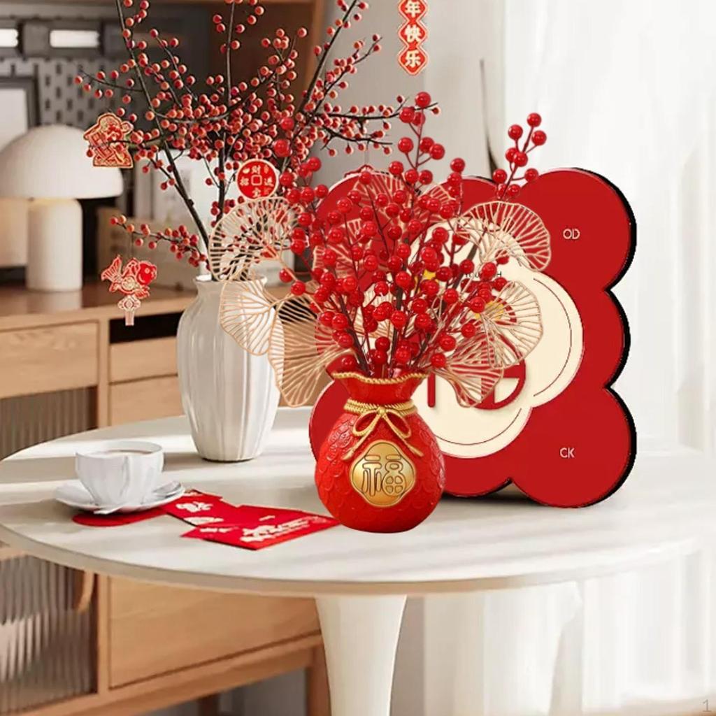 - 【Декор по фен-шуй】: Ваза для денег, поддельный цветок, благословение, ведро, украшенное искусственными красными ягодами и китайскими элементами удачи, привлекательное и красивое, станет прекрасным дополнением к украшению вашего дома.