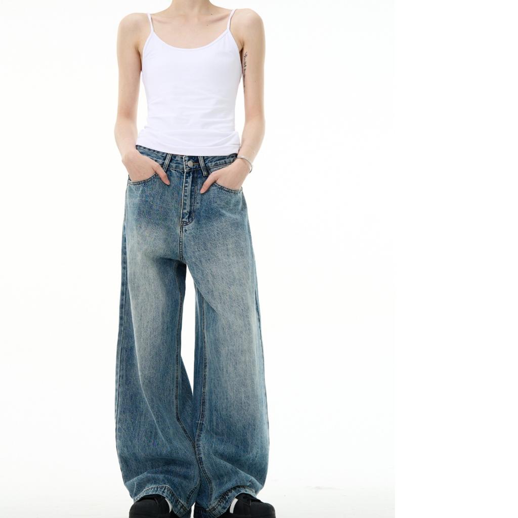Ретро-стираемые синие прямые джинсы для мужчин и женщин, широкие универсальные свободные повседневные брюки
