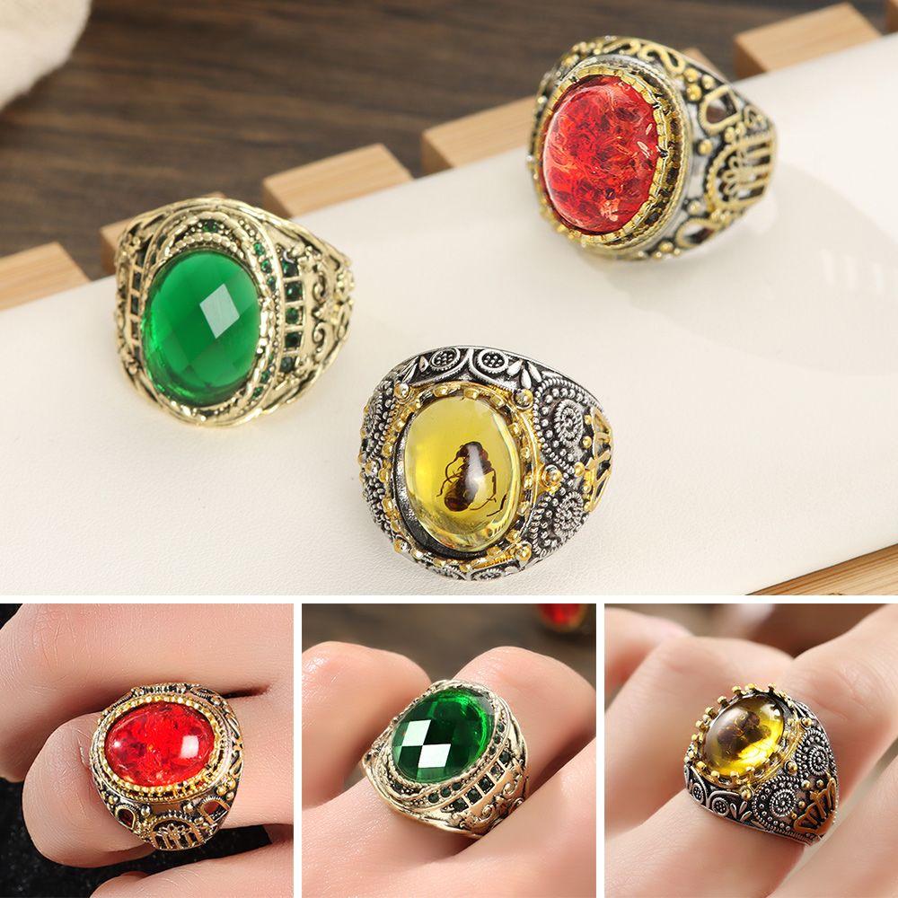 Свадебные резные религиозные мусульманские украшения ручной работы кольца для мужчин и женщин кольцо с цирконием желтый красный муравей
