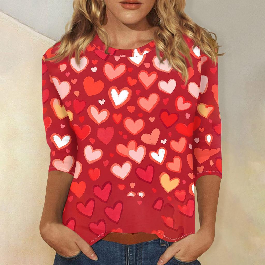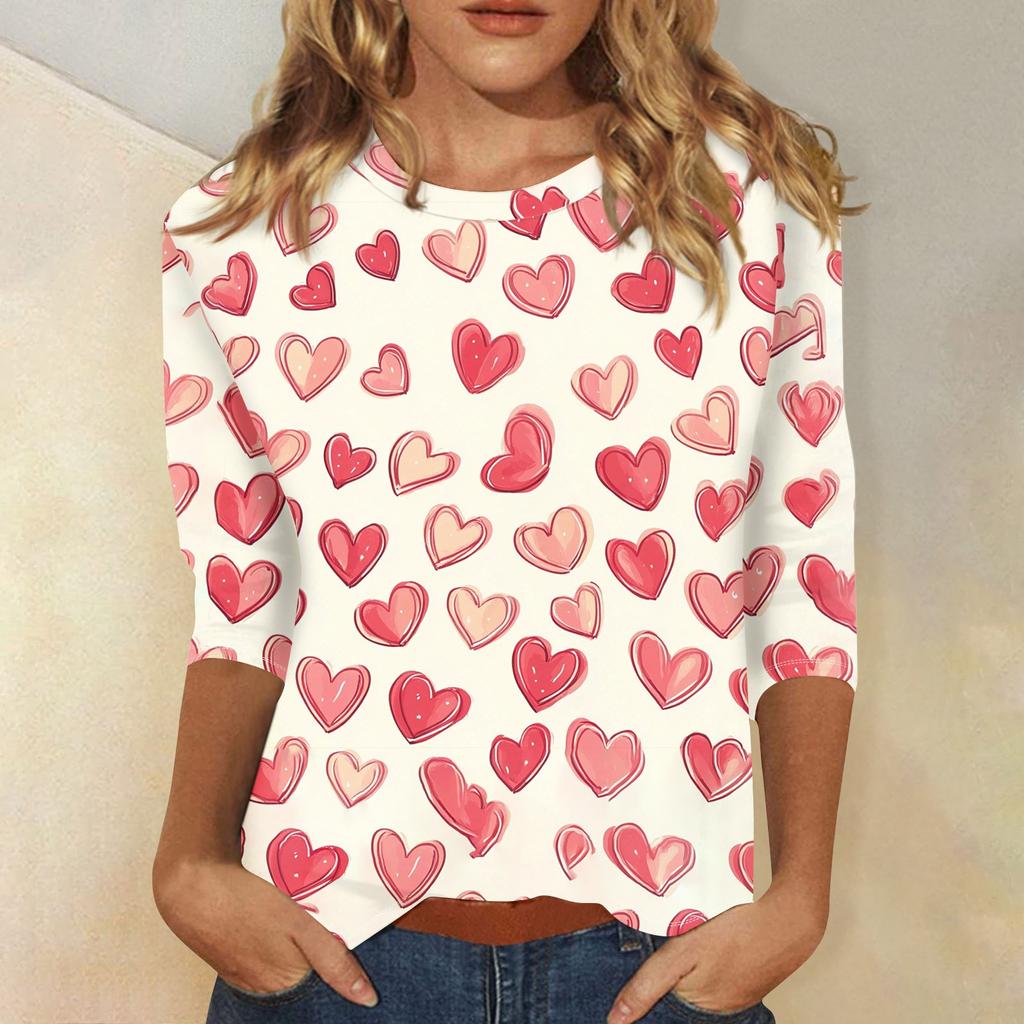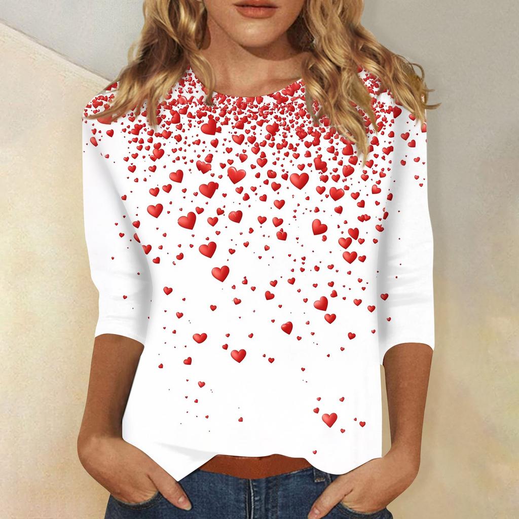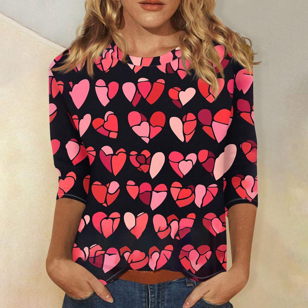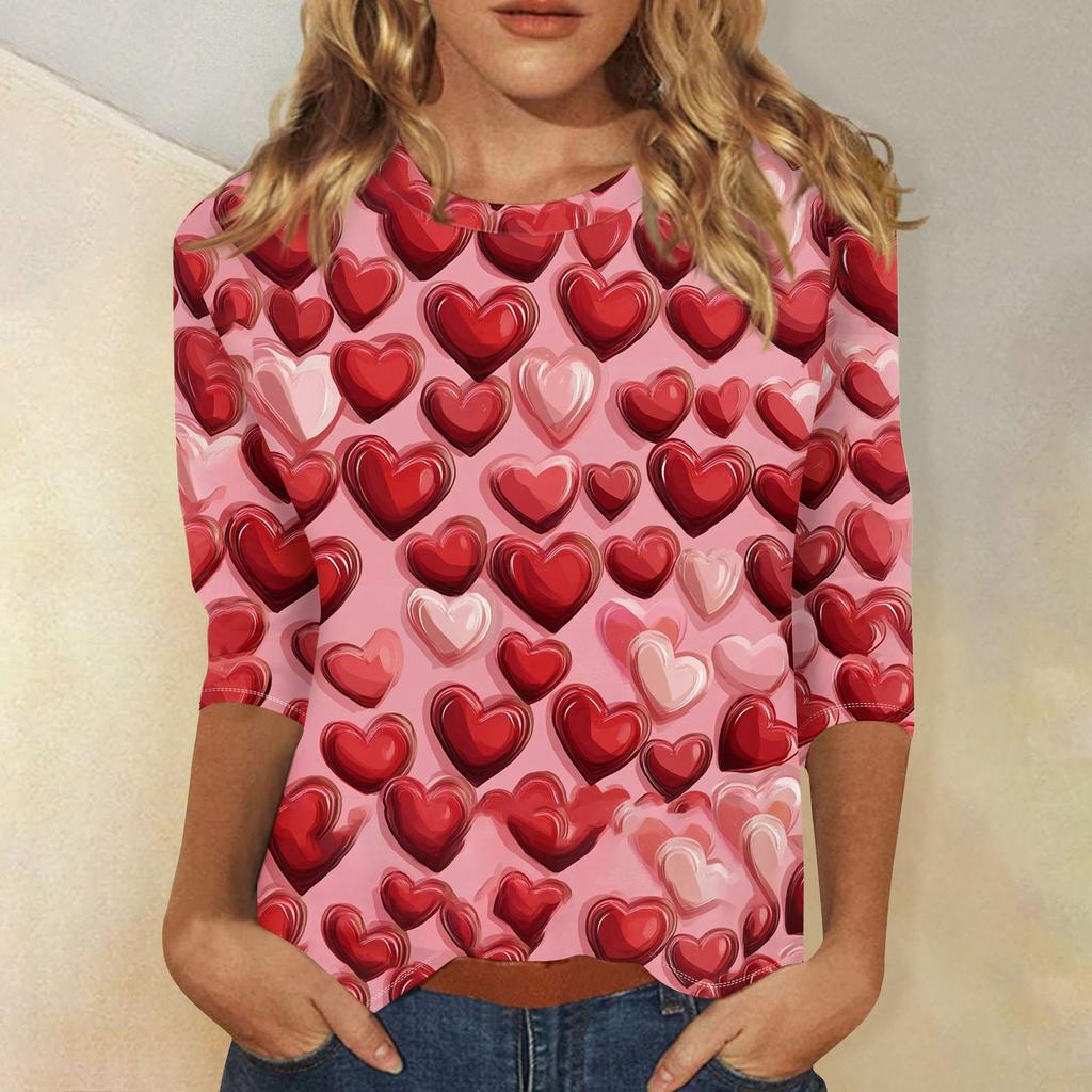 Женская повседневная свободная футболка с круглым вырезом и принтом ко Дню святого Валентина с рукавами три четверти