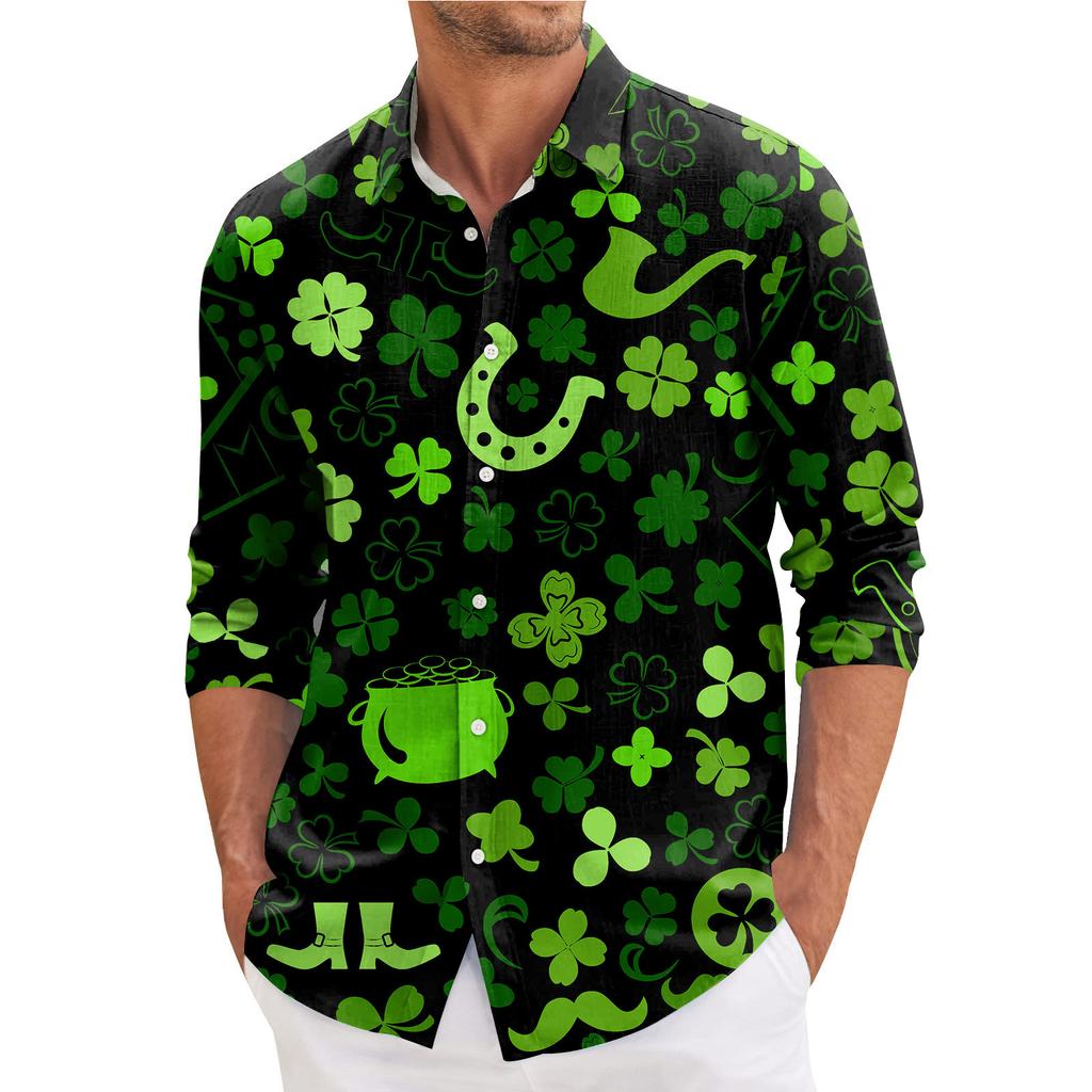 Мужская весенняя повседневная свободная рубашка с длинным рукавом с принтом Мужская рубашка