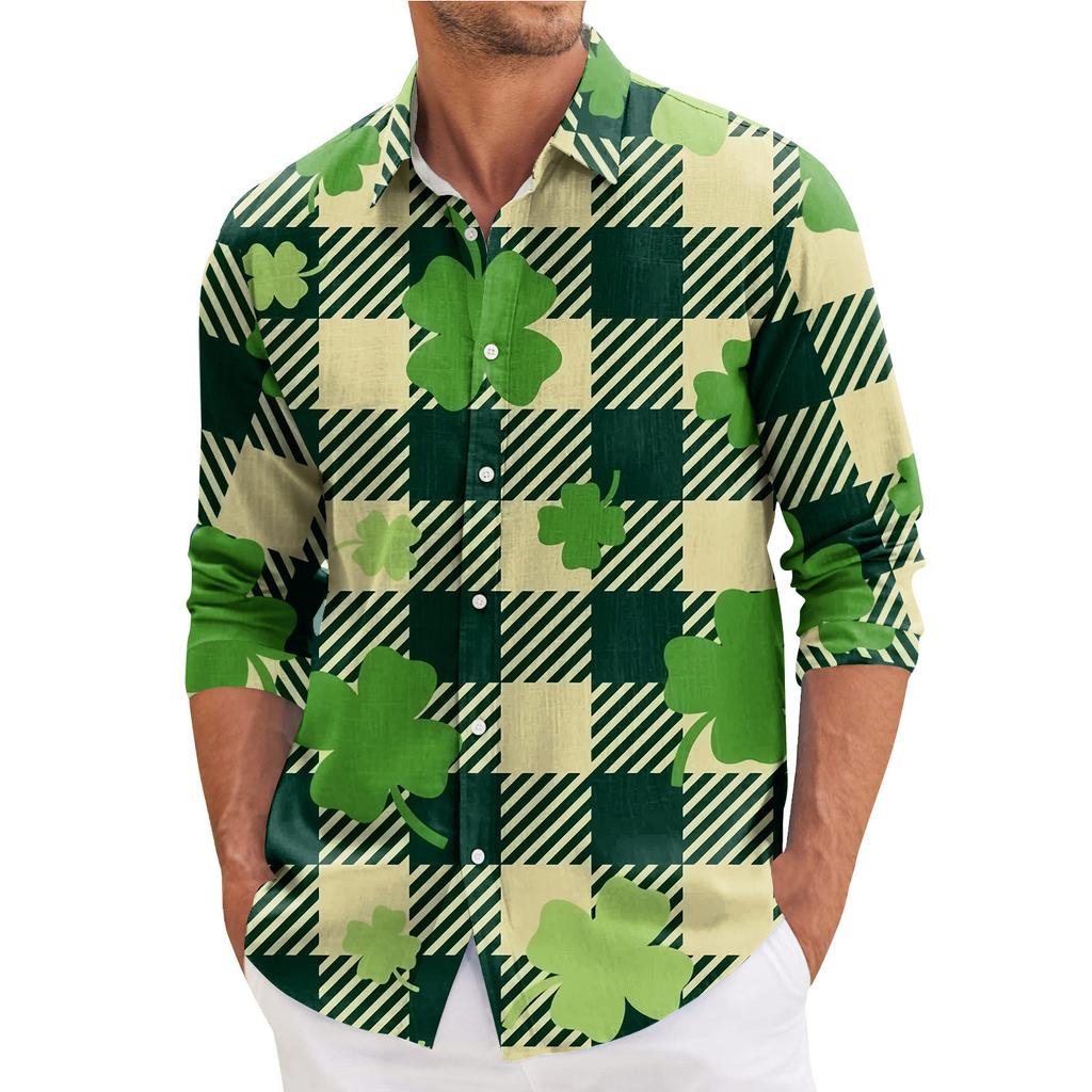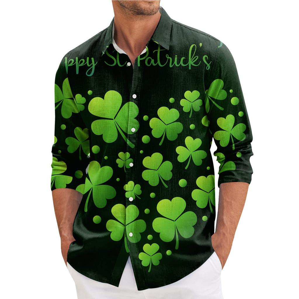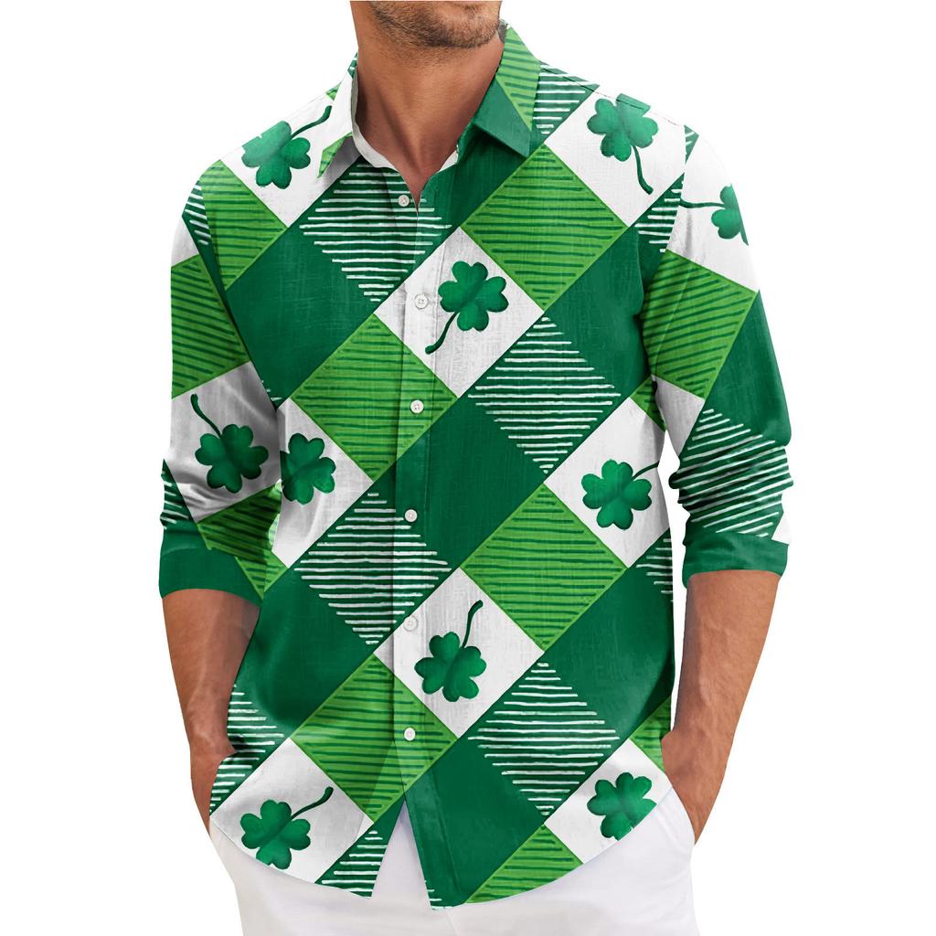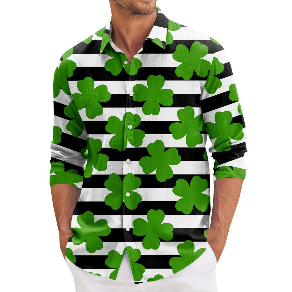 Мужская весенняя повседневная свободная рубашка с длинным рукавом с принтом Мужская рубашка