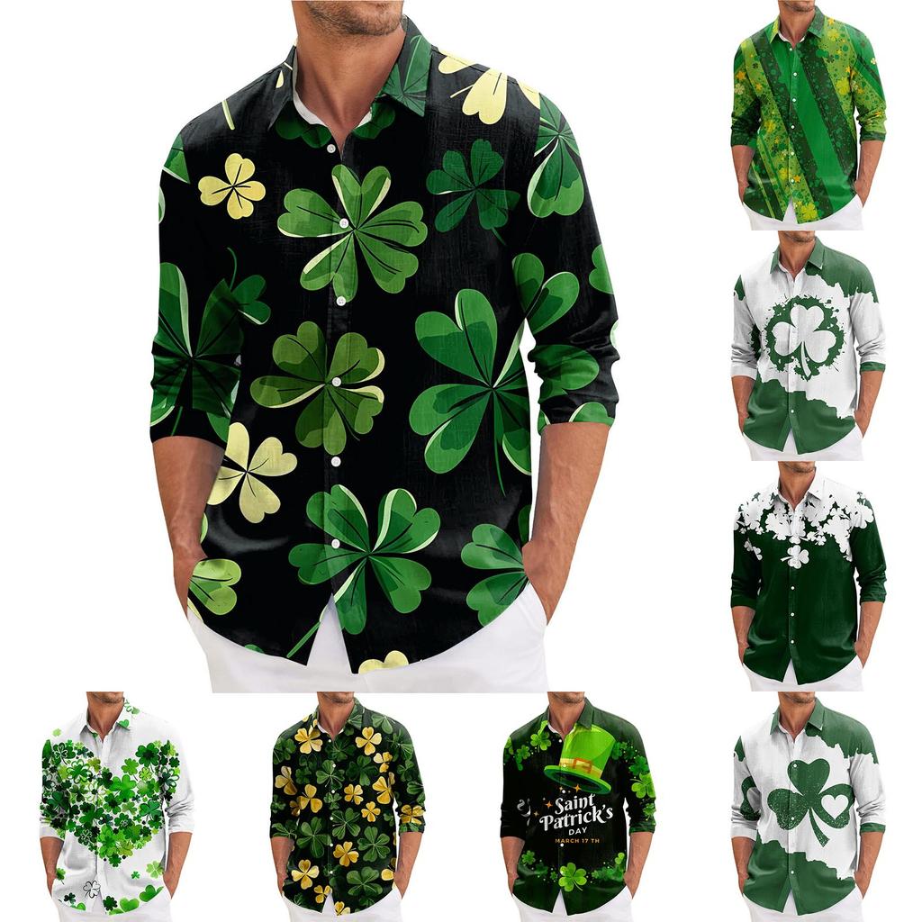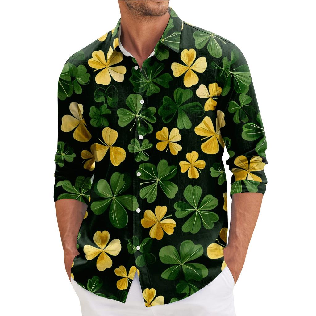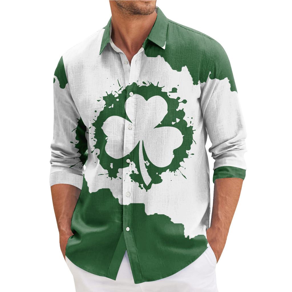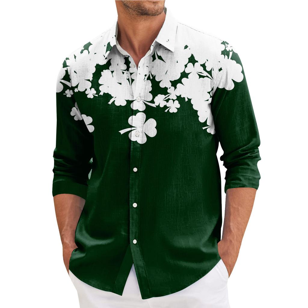 Мужская весенняя повседневная свободная рубашка с длинным рукавом с принтом Мужская рубашка