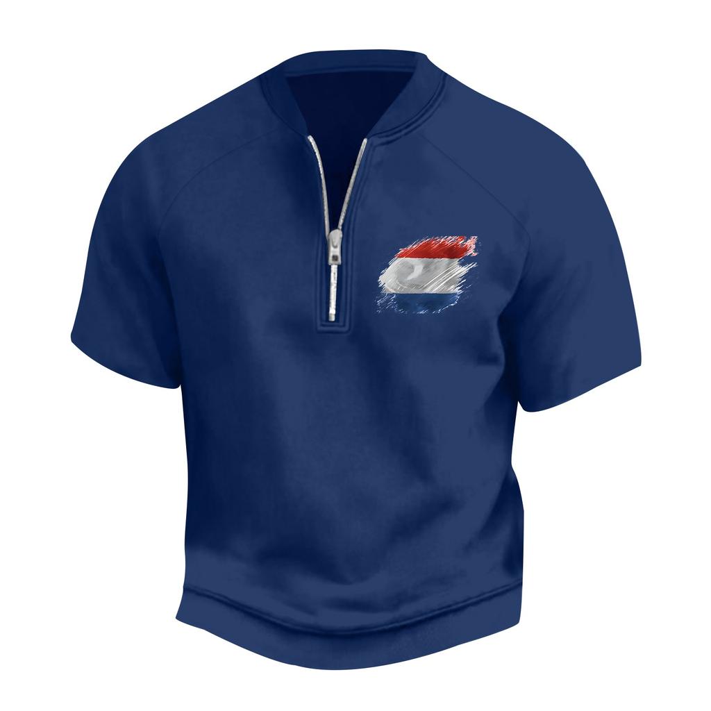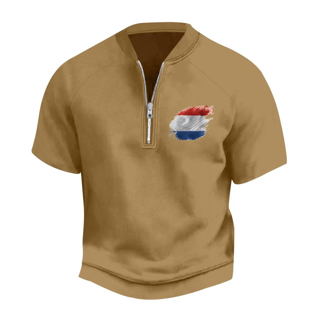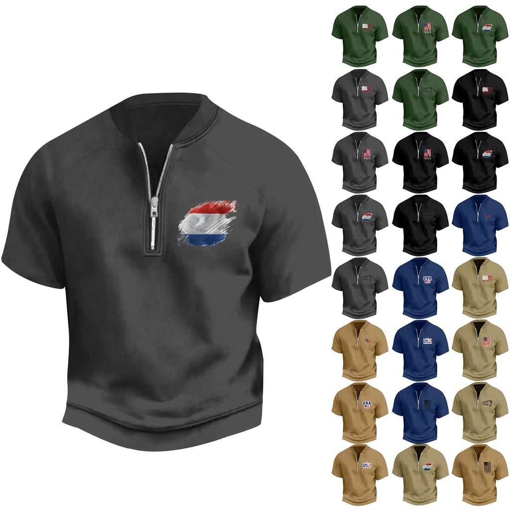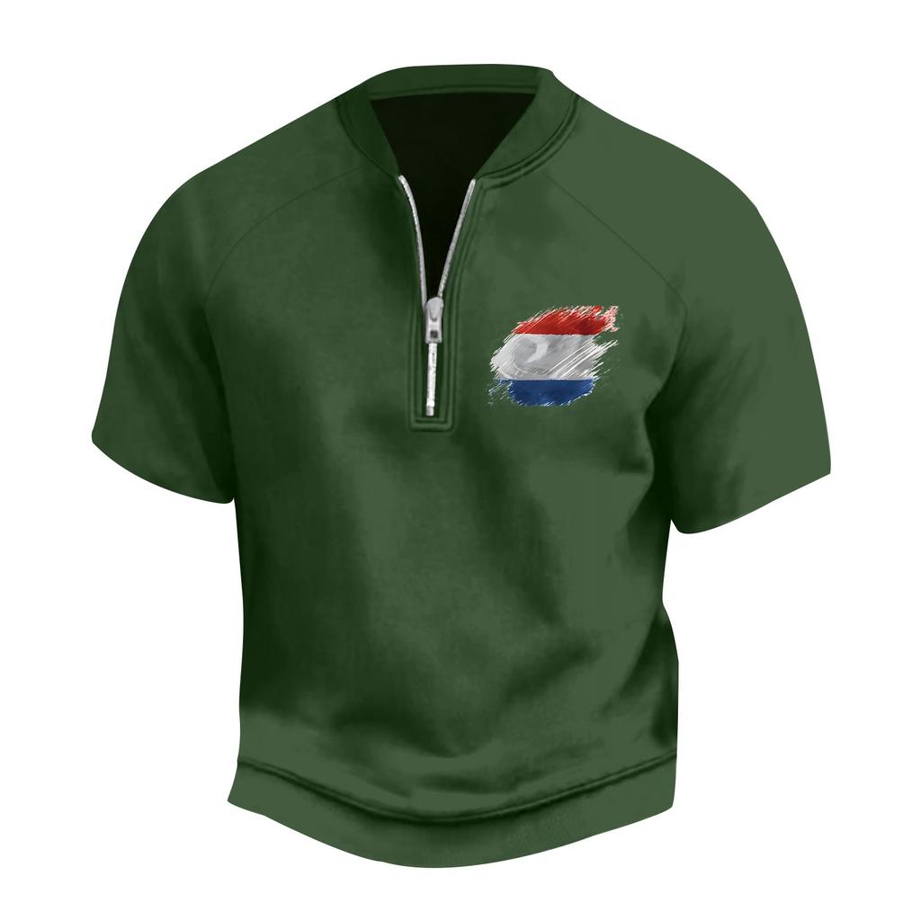 Мужская летняя винтажная футболка с полумолнией и принтом флага Дня независимости с коротким рукавом