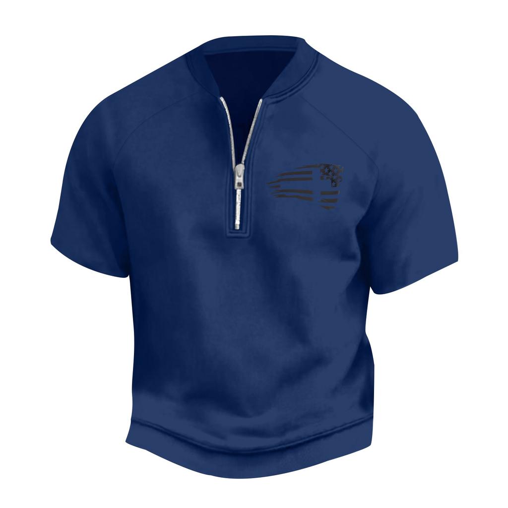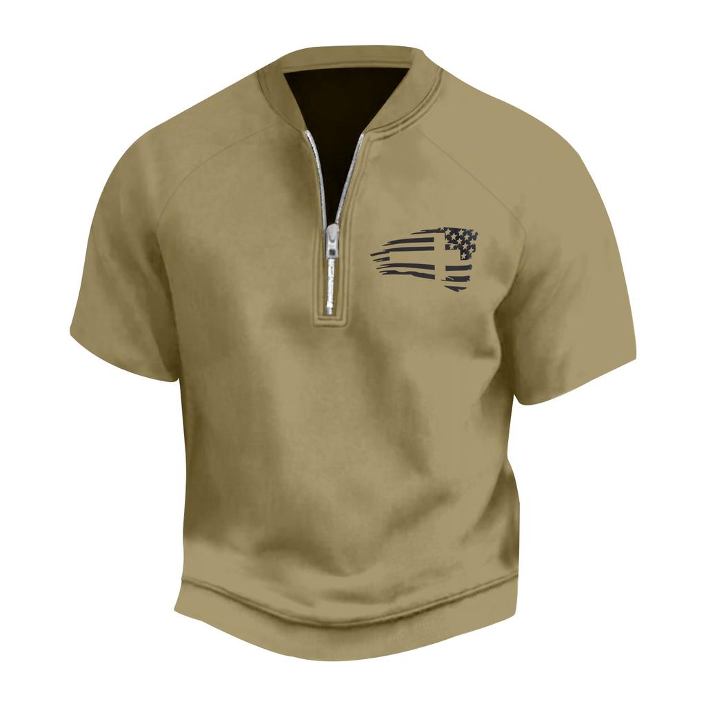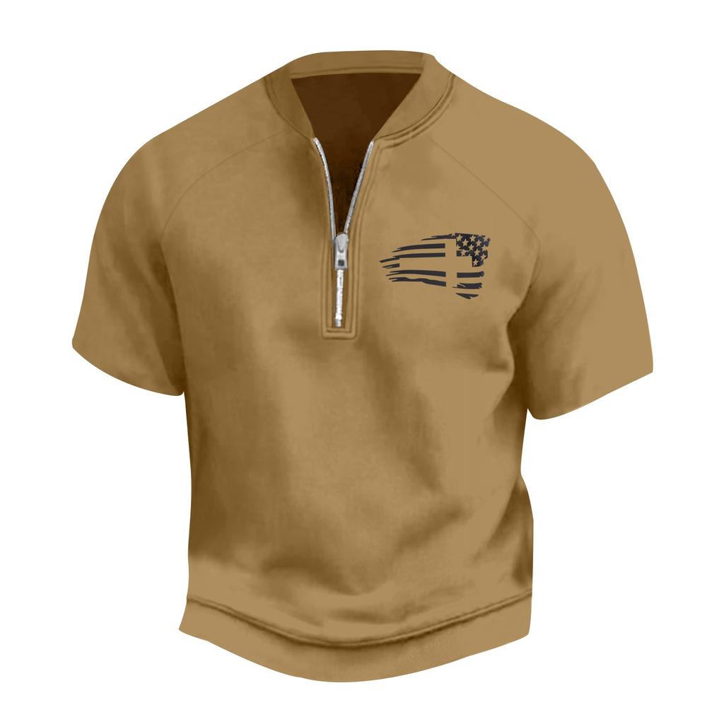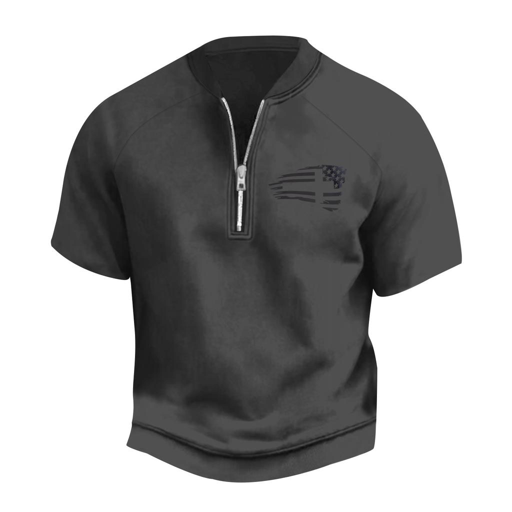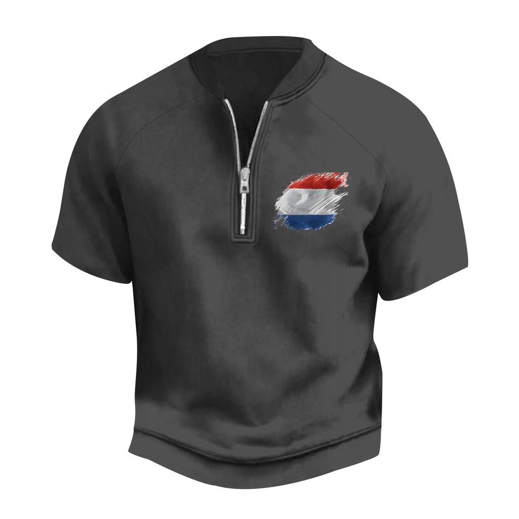 Мужская летняя винтажная футболка с полумолнией и принтом флага Дня независимости с коротким рукавом