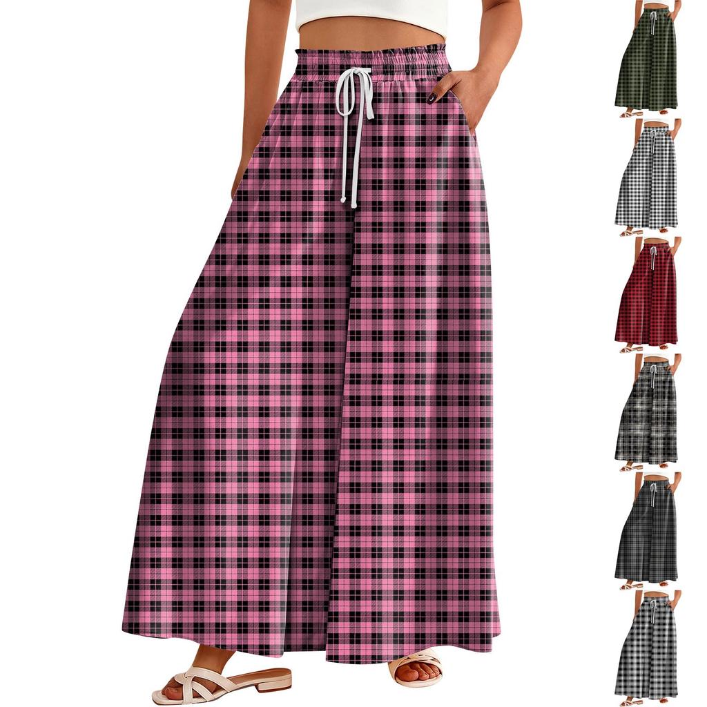 Женские брюки с высокой талией, широкие, повседневные, струящиеся брюки-палаццо, клетчатые брюки с карманом — купить товар онлайн с бесплатной доставкой до всему миру!