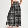 Женские брюки с высокой талией, широкие, повседневные, струящиеся брюки-палаццо, клетчатые брюки с карманом