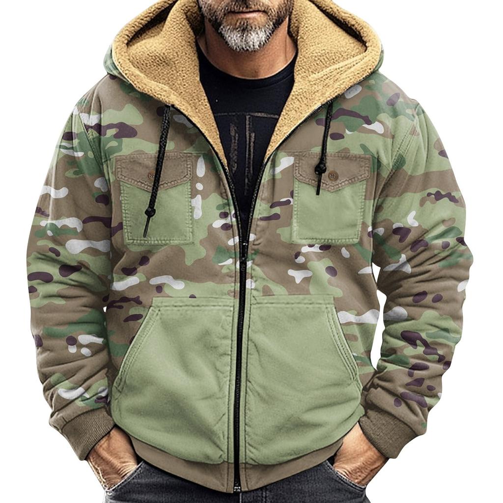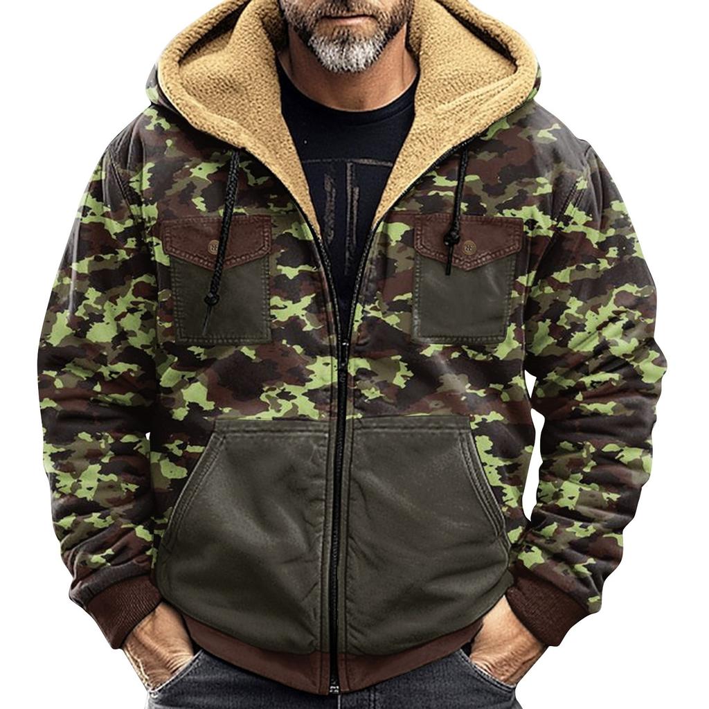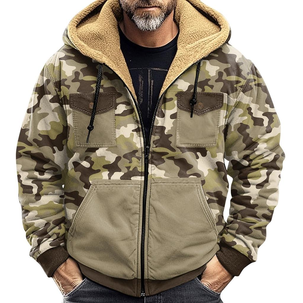 Мужская зимняя куртка с камуфляжным принтом, мужская повседневная куртка с капюшоном на молнии
