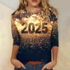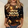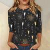 Женская мода повседневная новогодняя принтованная круглая горловина с рукавом три четверти топ Новый год 2025