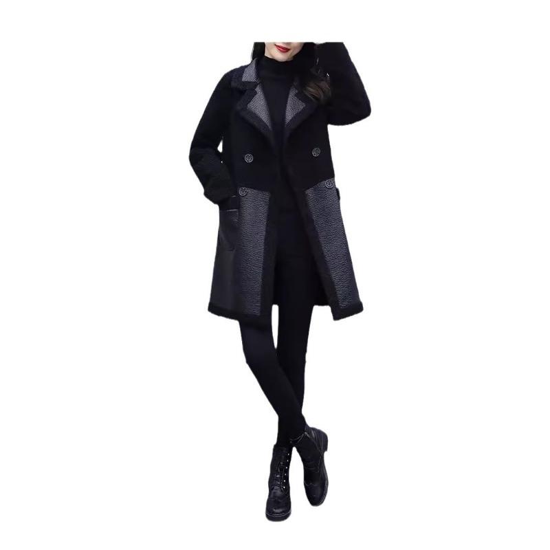 Весенне-осеннее женское длинное кожаное пальто сращивание ретро двухсторонний плюс бархат корейский тонкий женский тренчкот новые продукты