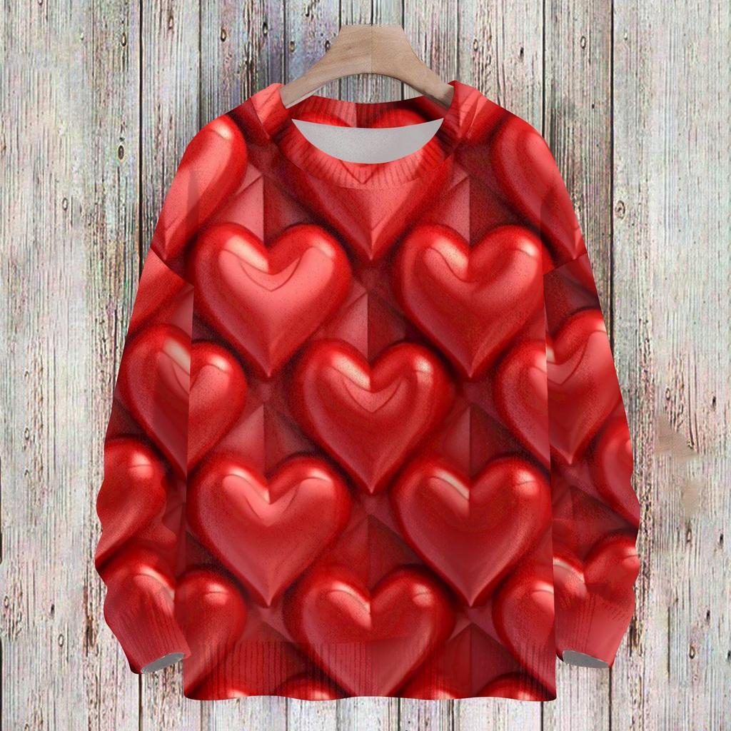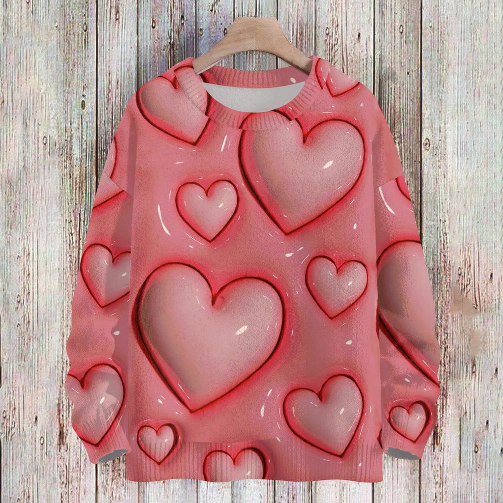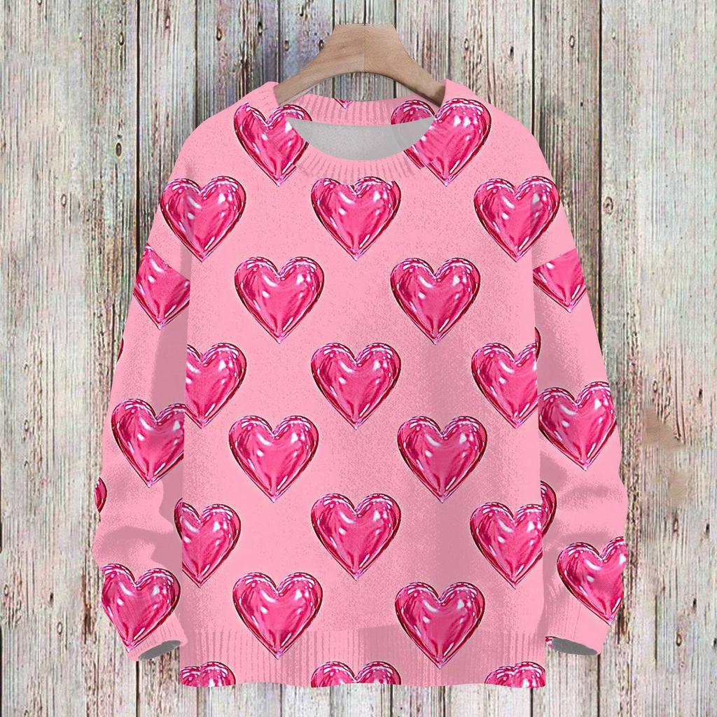 Женская мода круглый вырез повседневный длинный рукав с принтом ко Дню святого Валентина шерстяной трикотажный топ