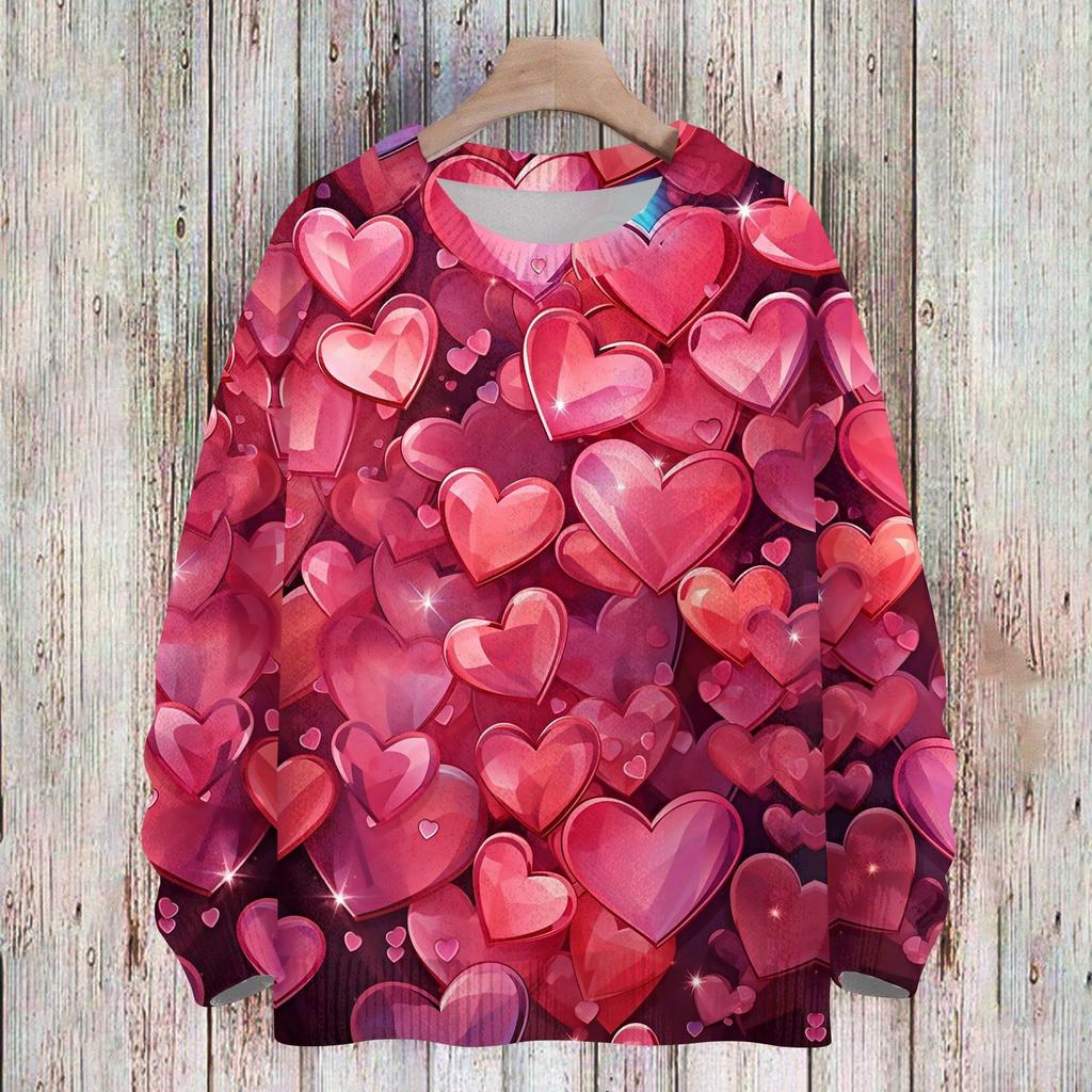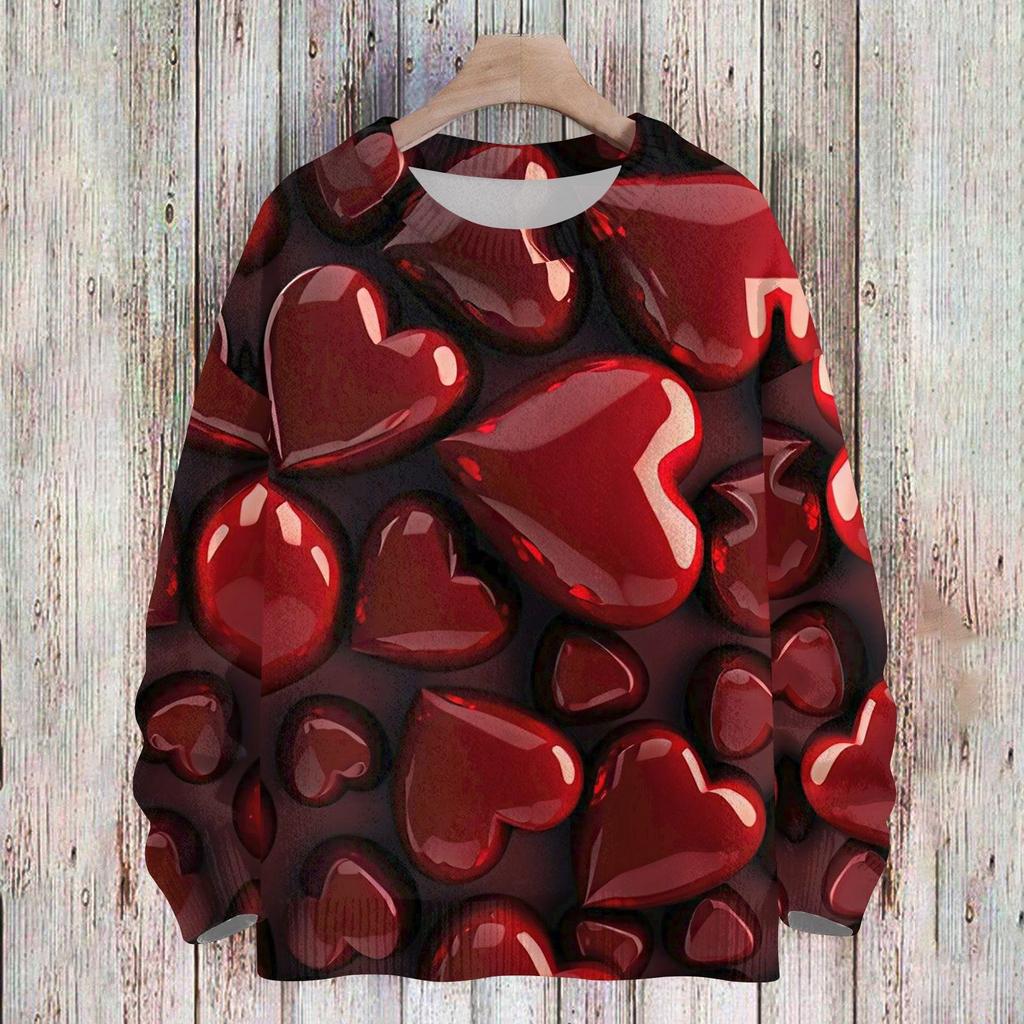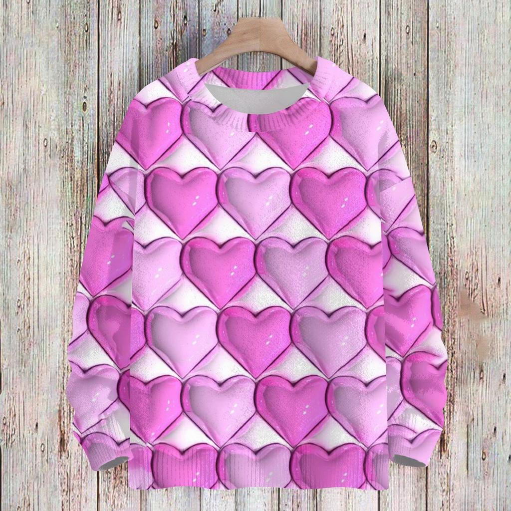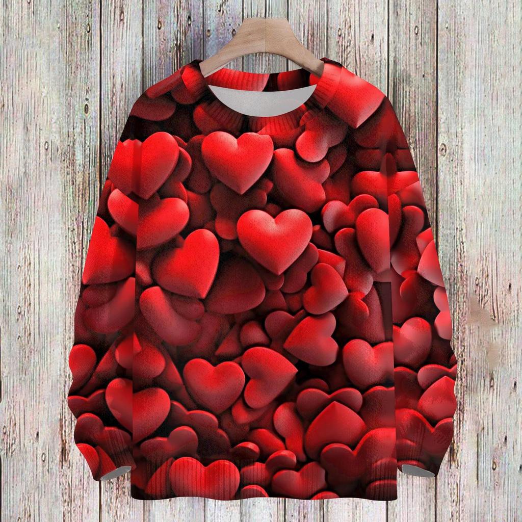 Женская мода круглый вырез повседневный длинный рукав с принтом ко Дню святого Валентина шерстяной трикотажный топ