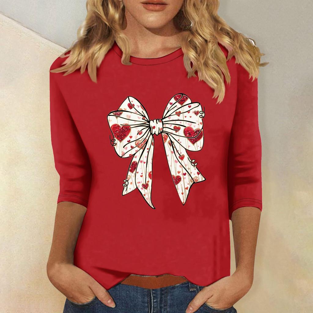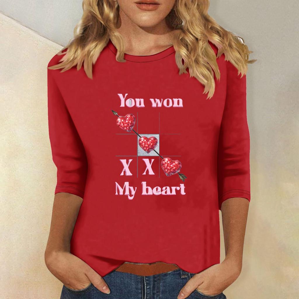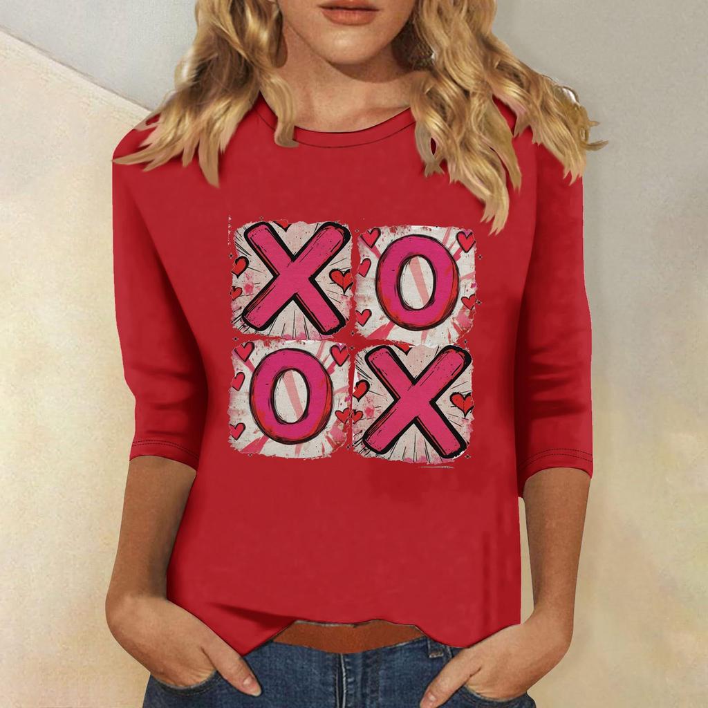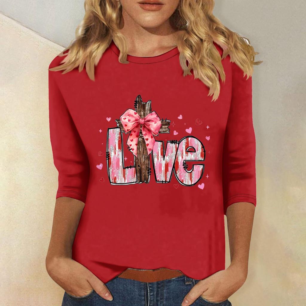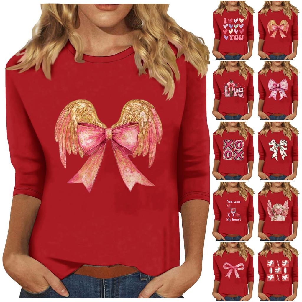 Женская мода повседневная кофта с рукавом три четверти и круглым вырезом с принтом ко Дню святого Валентина
