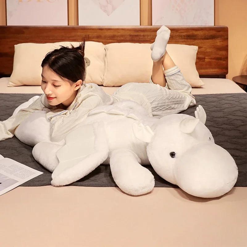 Мультяшный гигантский летающий дракон, белый, розовый, снежный дракон, плюшевый динозавр, плюшевая игрушка, мягкая кукла, большая подушка для сна, подарок для ребенка