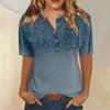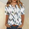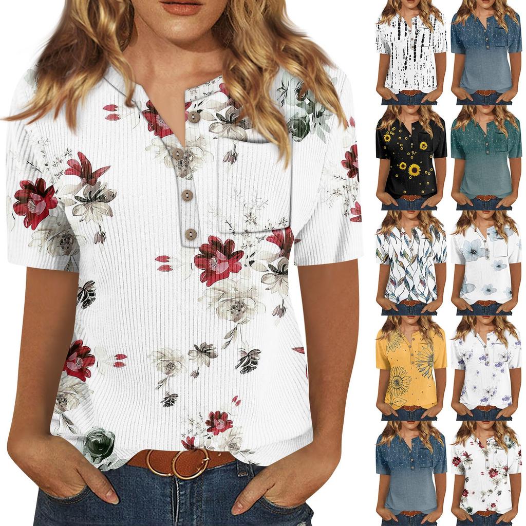 Футболки для женщин, плиссированные, с V-образным вырезом, нарядные, повседневные блузки с принтом, короткие рукава, летние топы, свободный крой