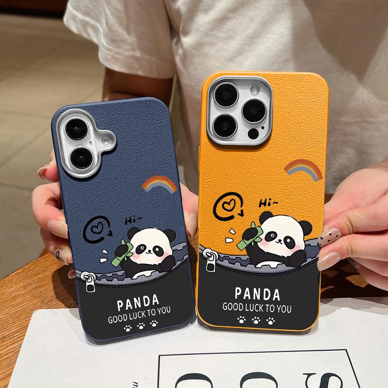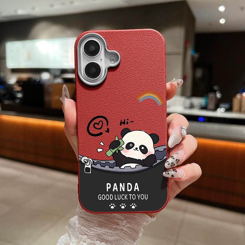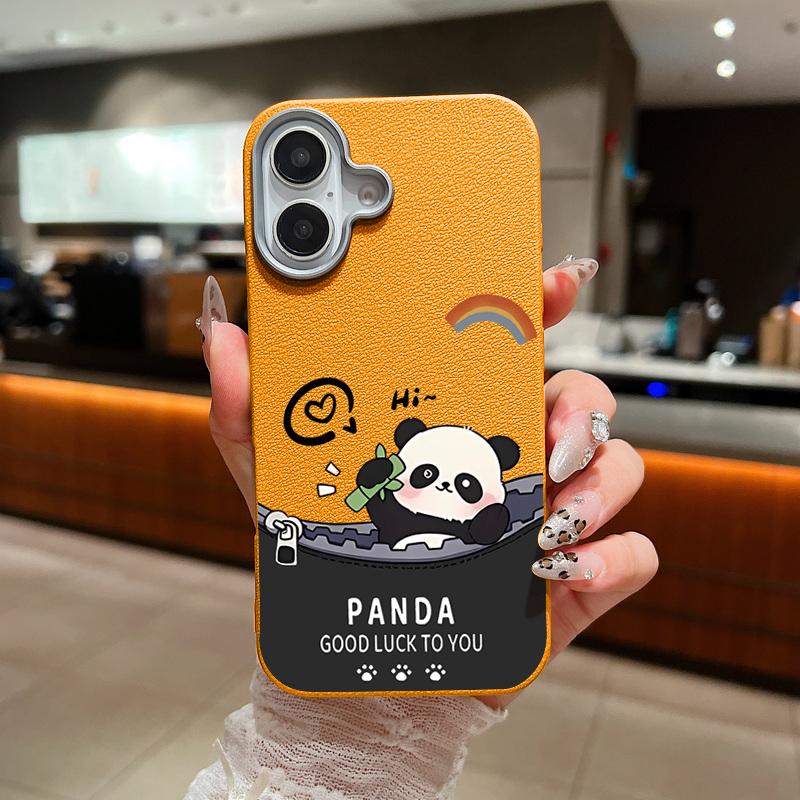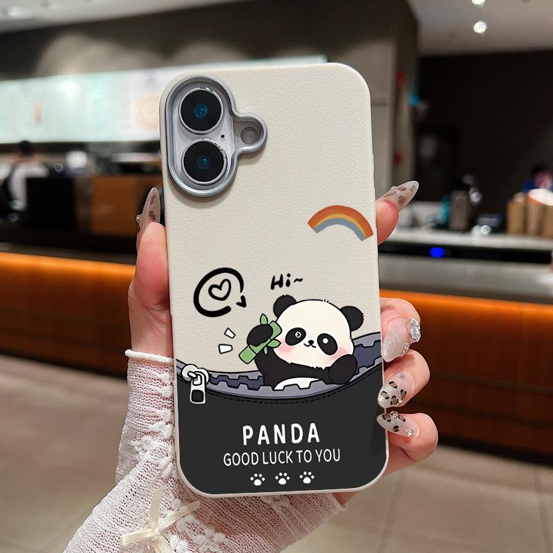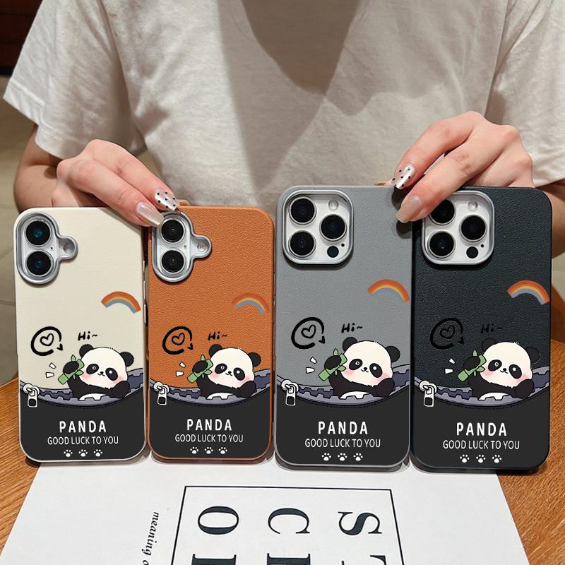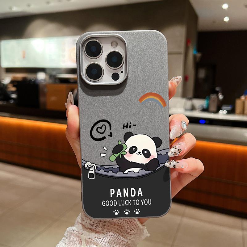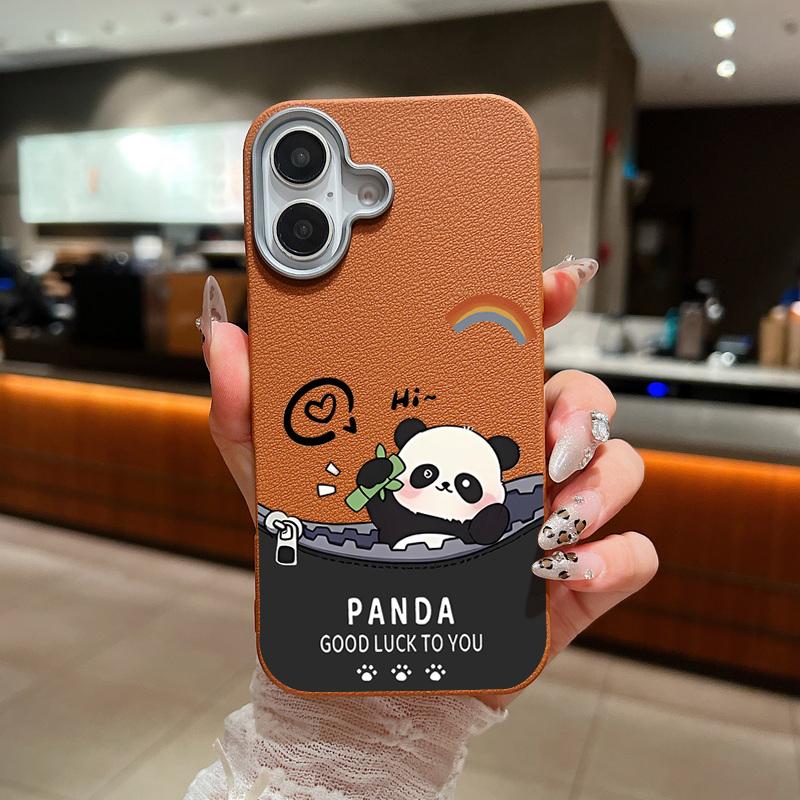 Чехол для телефона из однотонной кожи с текстурой милого мультяшного рисунка в виде панды для iPhone 16 Pro 15 14 Plus 13 12 Pro Max 11, ударопрочный, мягкий, из ТПУ, тонкий чехол