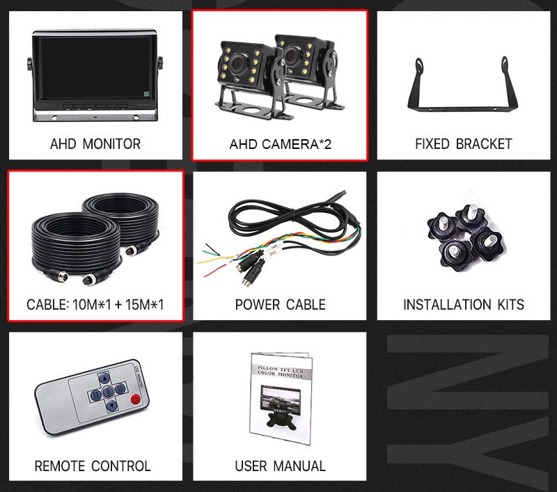 AHD 1080P 7-дюймовый IPS экран грузовик автобус автомобиль видеорегистратор монитор с 2 каналами переднего заднего вида AHD IR автомобильная камера