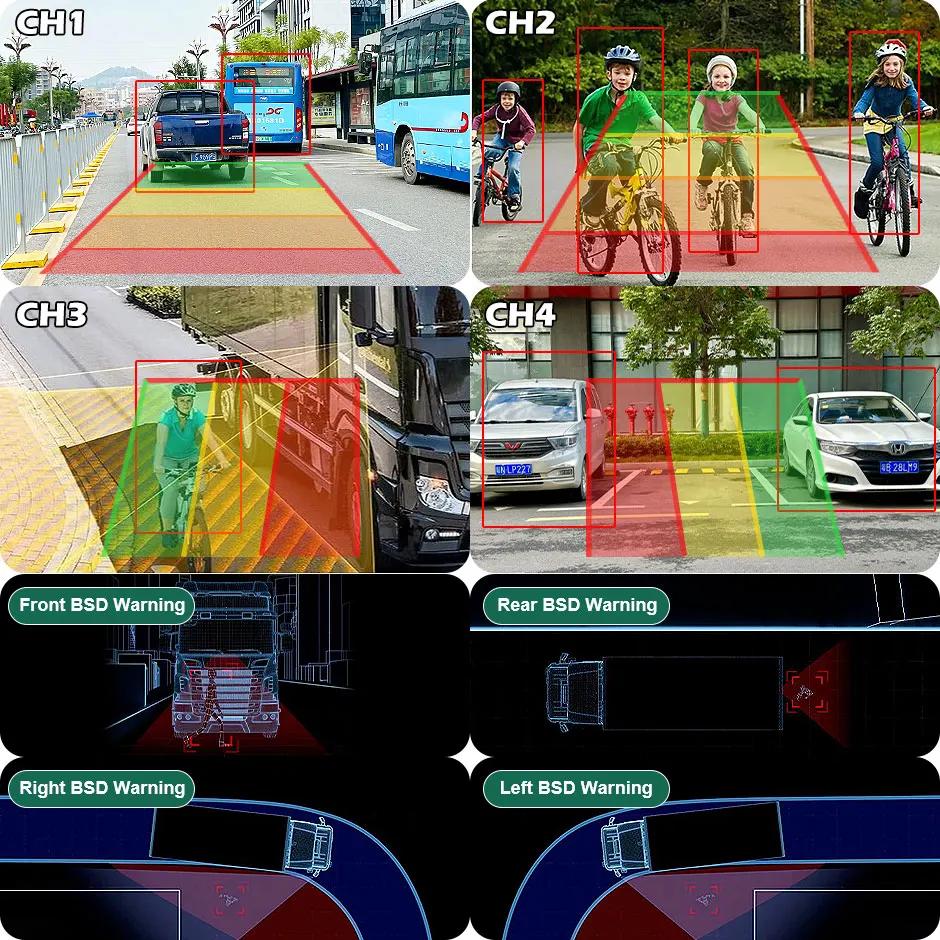 GreenYi беспроводной 7'' AHD радар слепых зон BSD сигнализация DVR регистратор IPS разделенный экран монитор грузовика с 4 шт. ИК-камера для автобуса RV