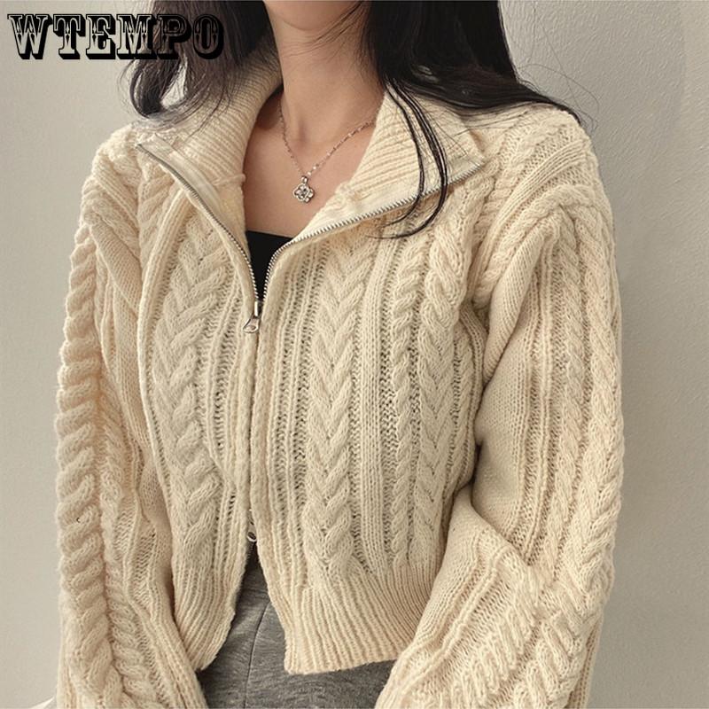 Осенне-зимний женский вязаный свитер с застежкой-молнией и жареным тестом, женский вязаный кардиган, свитер