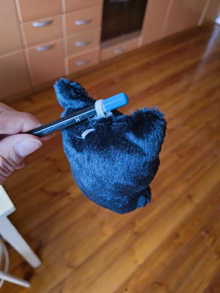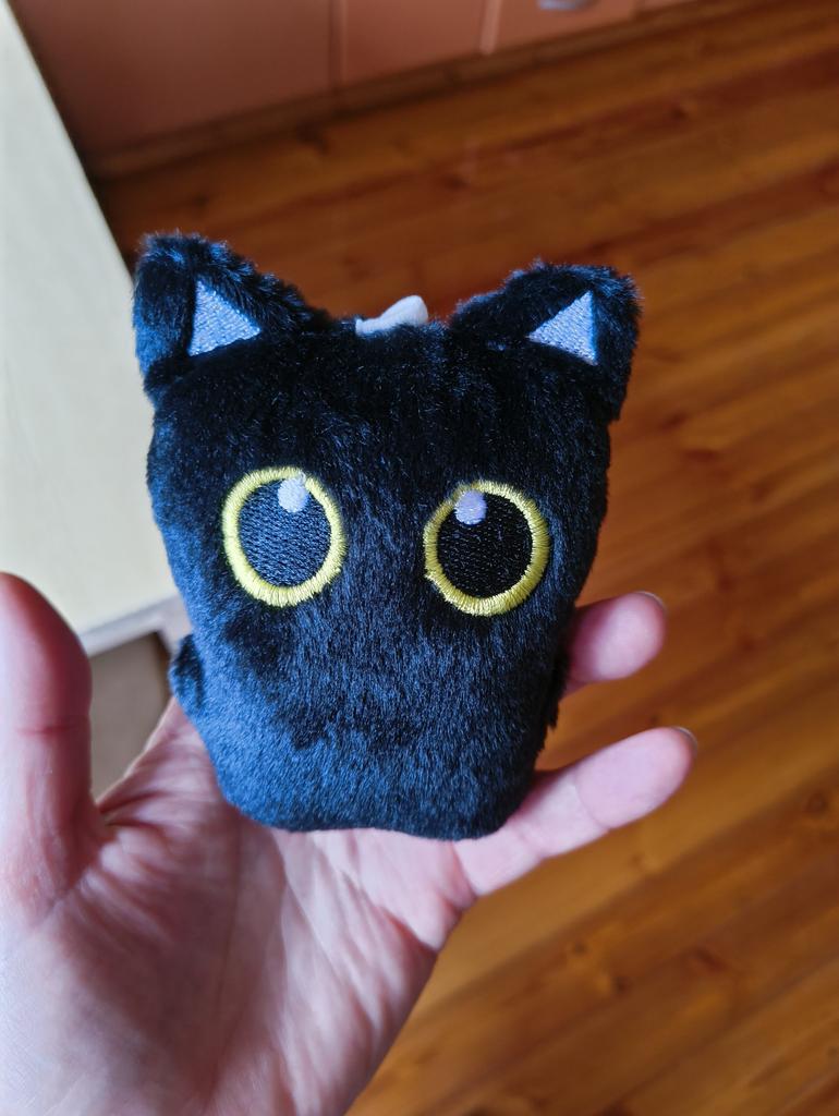 Миленький, маленький, плоский, плюшевый брелок. Пищит при нажатии. 10 см. Немного не симметричный.