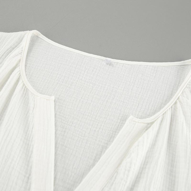 Модные однотонные блузки с V-образным вырезом, женские свободные топы с рукавами-фонариками, повседневная рубашка из хлопкового крепа, весна-осень, стиль Харадзюку