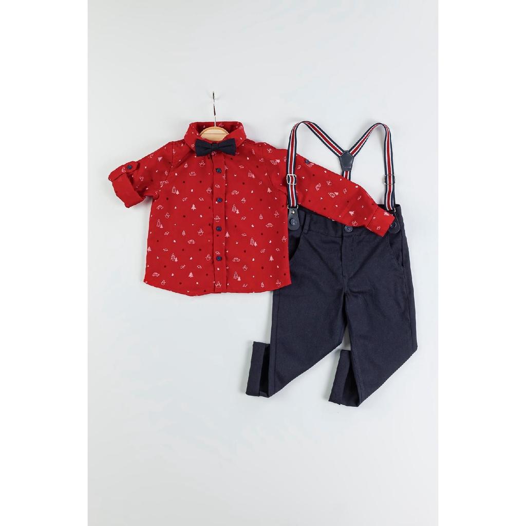 Новогодний концепт-костюм для мальчика с комбинезоном и рубашкой